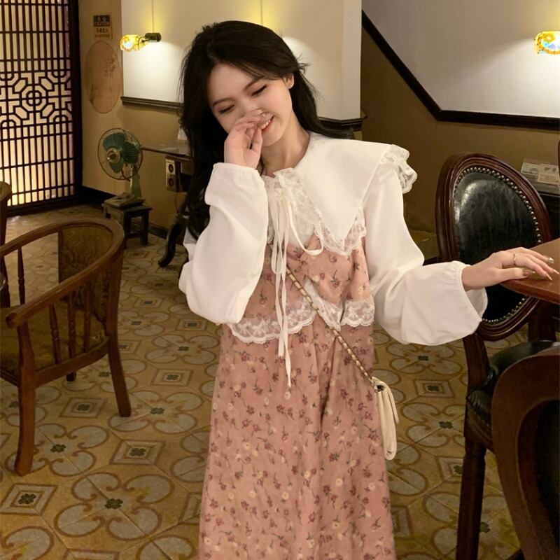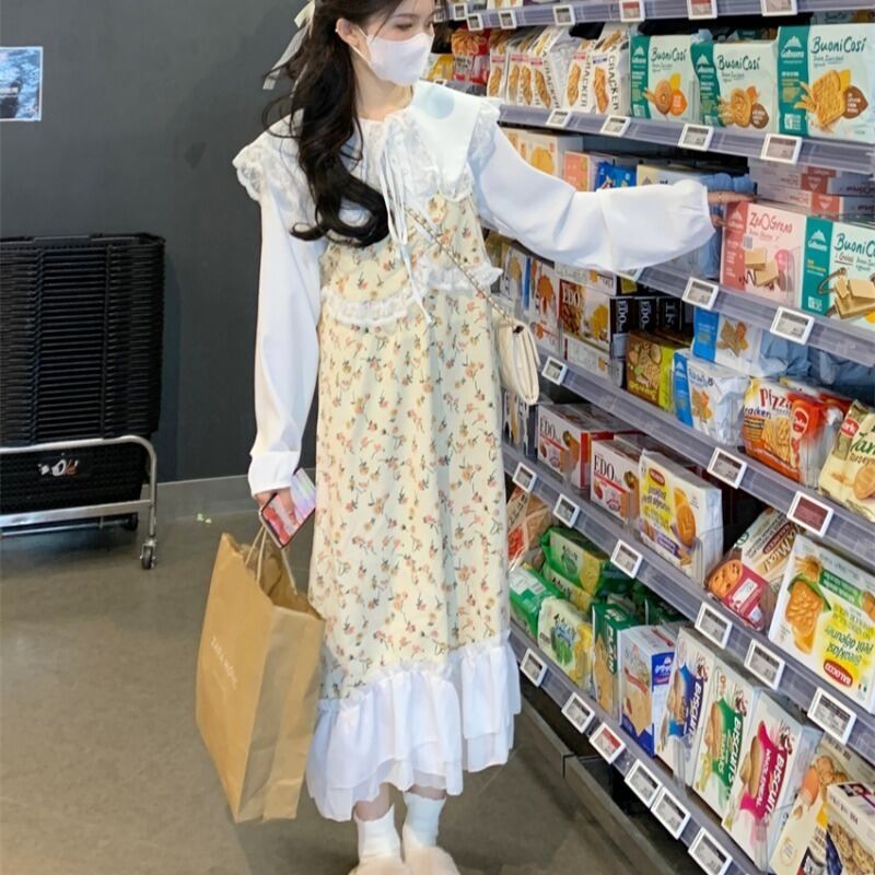 フローラルワンピースレディーススプリング秋物スカート ウェスト 大人ガーリー スウィート キュート カジュアル 春物 オータム 花柄 ウエスト ミドル丈 コーデ Marchs77179213886