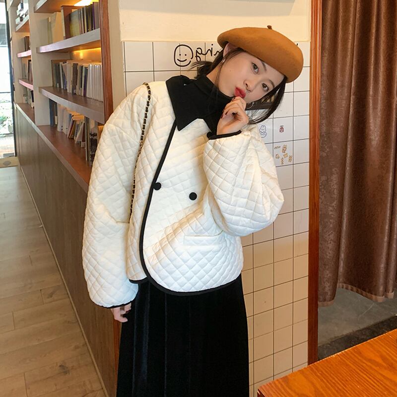 スタイルホワイトウィンタースタンダードカラーショートコート トップス コットン レトロ 冬物 コーデ Marchs40080698615