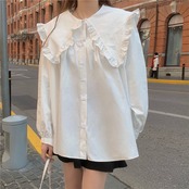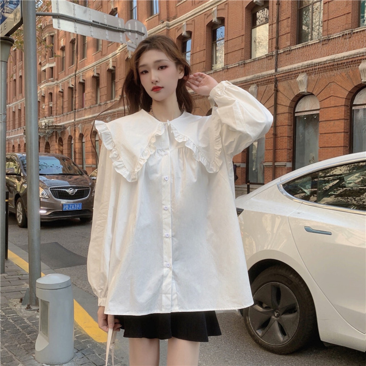 カラーシャツ スプリングルーズトップス ロング レッド 春物 長袖 コーデ Marchs89295725692