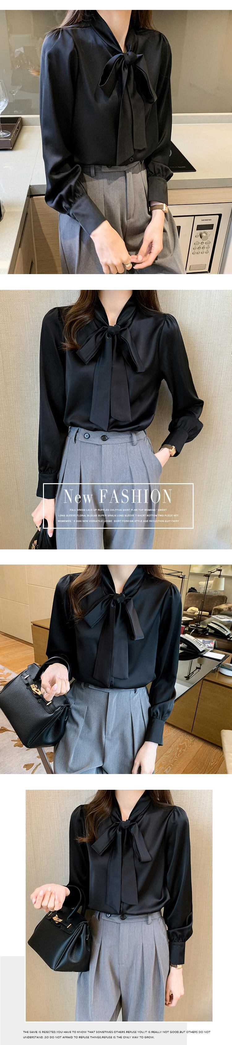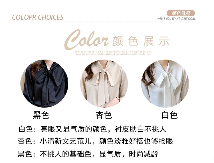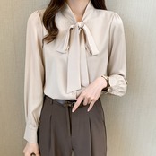 リボンシャツ スプリングシフォンルーズトップス サテン ロング 春物 長袖 コーデ Marchs62825046944