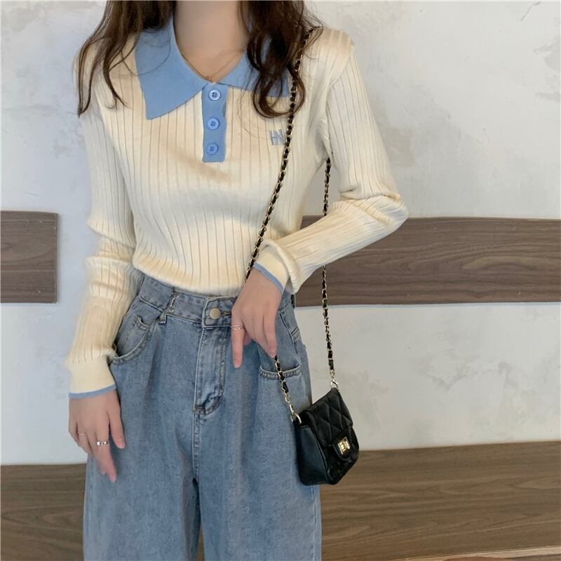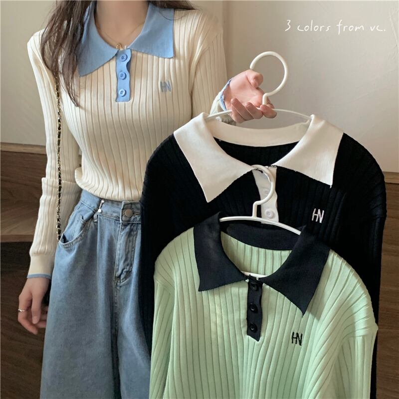 夏服韓国ファッションカラーグリーンセーター スリムショートニットゆったりシャツ ロング 夏物 スタイル 長袖 コーデ Marchs94697086365