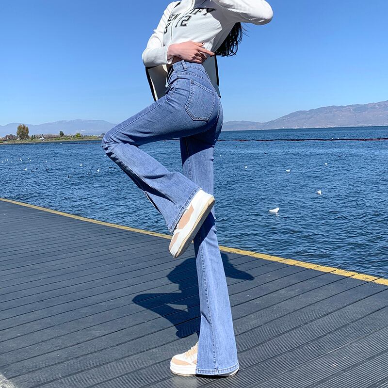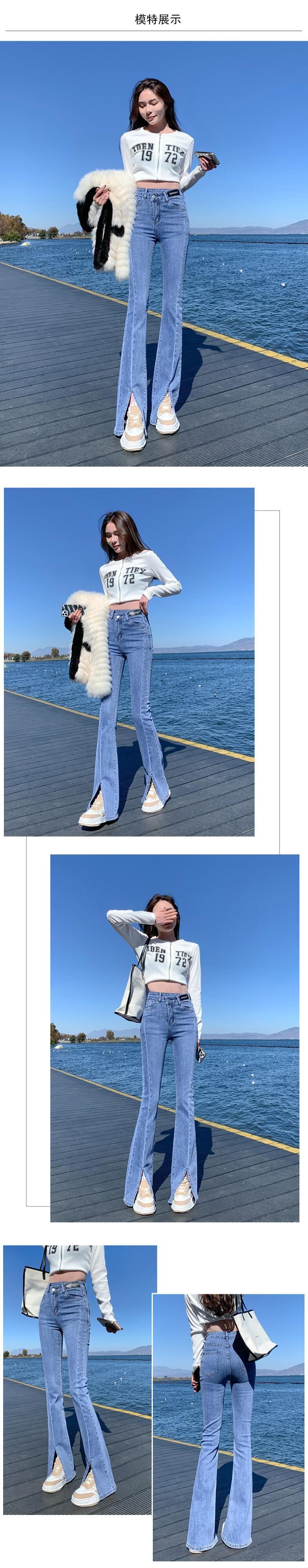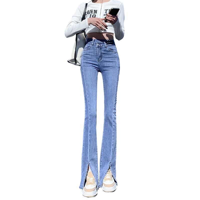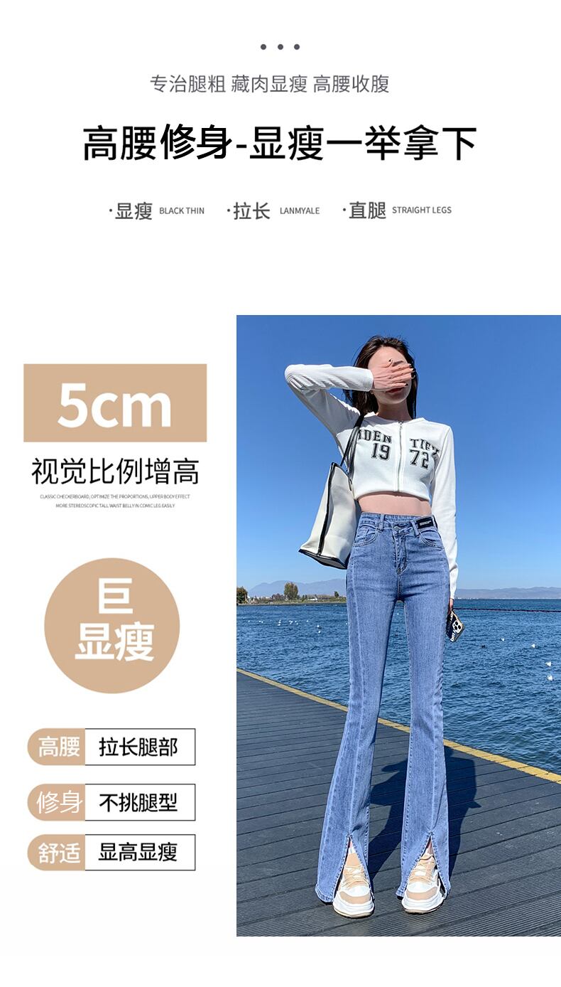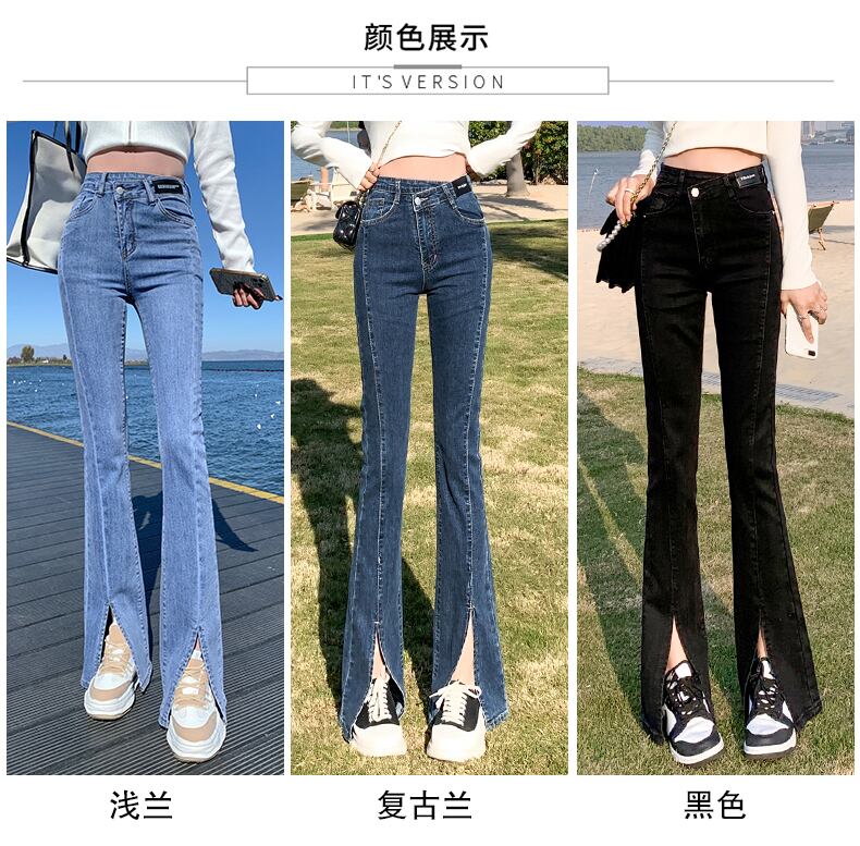ウェストスリットジーンズ スプリングスタイル薄手 ハイウェスト レッド 春物 ウエスト コーデ Marchs49642032966