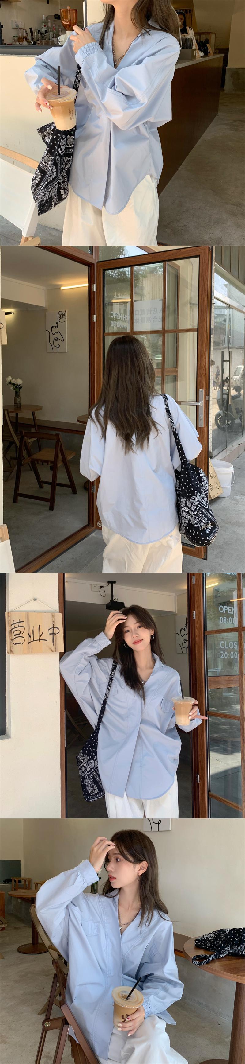 ホワイトシャツ Vネックルーズトップス カジュアルスプリング ロング 春物 長袖 NEW コーデ Marchs79294186892