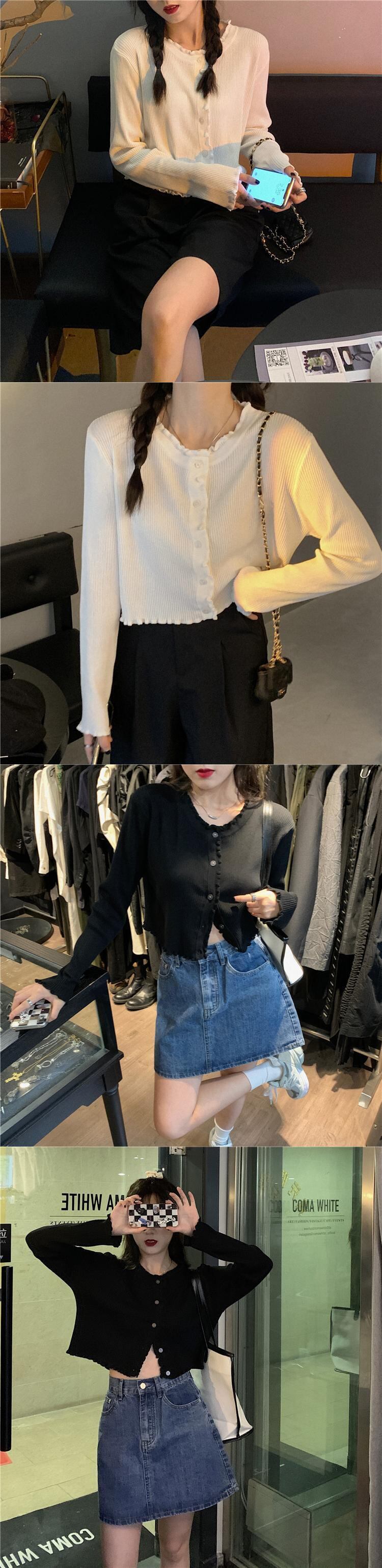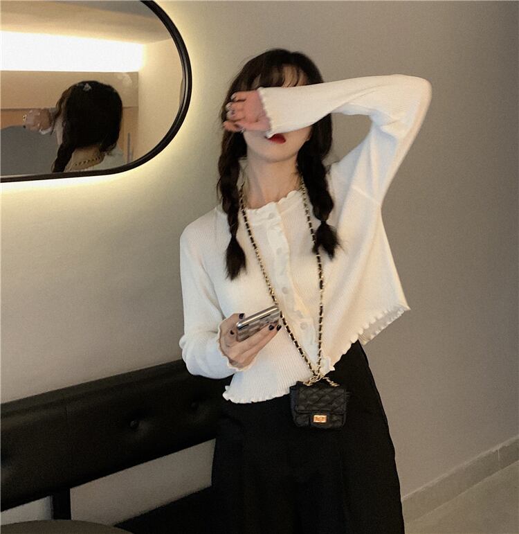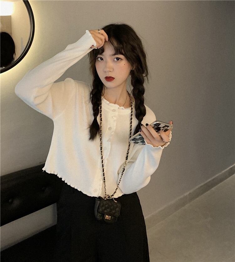 夏服ホワイトカーディガンニットジャケット ショートスタイル長袖スリーブハイウェストウェストトップス ロング 大人ガーリー スウィート キュート カジュアル 夏物 ウエスト コーデ Marchs56568104976