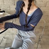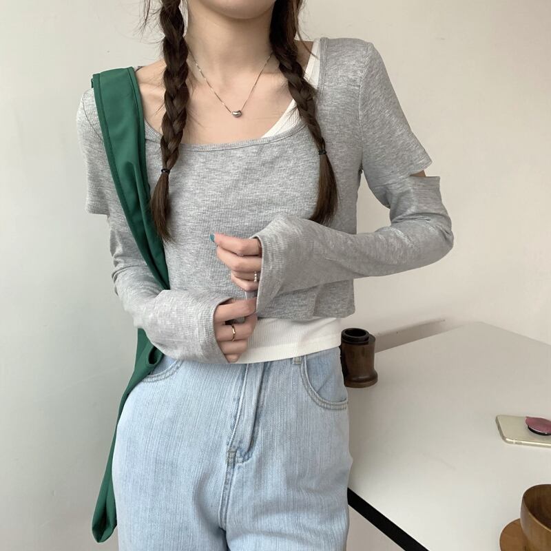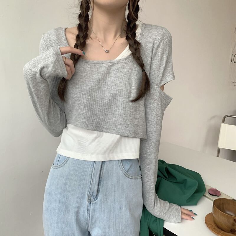 ショートトップス シャツ スプリング秋物ゆったり ロング 春物 オータム Tシャツ 長袖 コーデ Marchs13275194212
