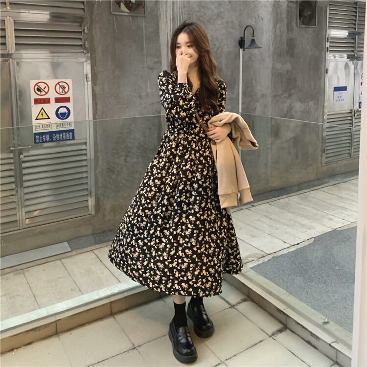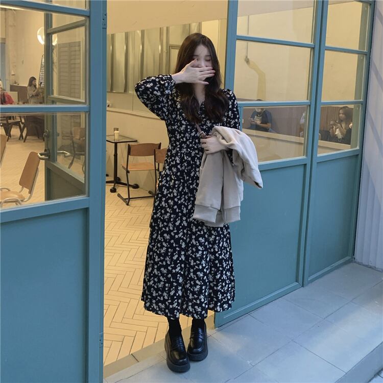 スプリングロングスカート フローラルワンピース秋物 春物 オータム 花柄 コーデ Marchs39990758079
