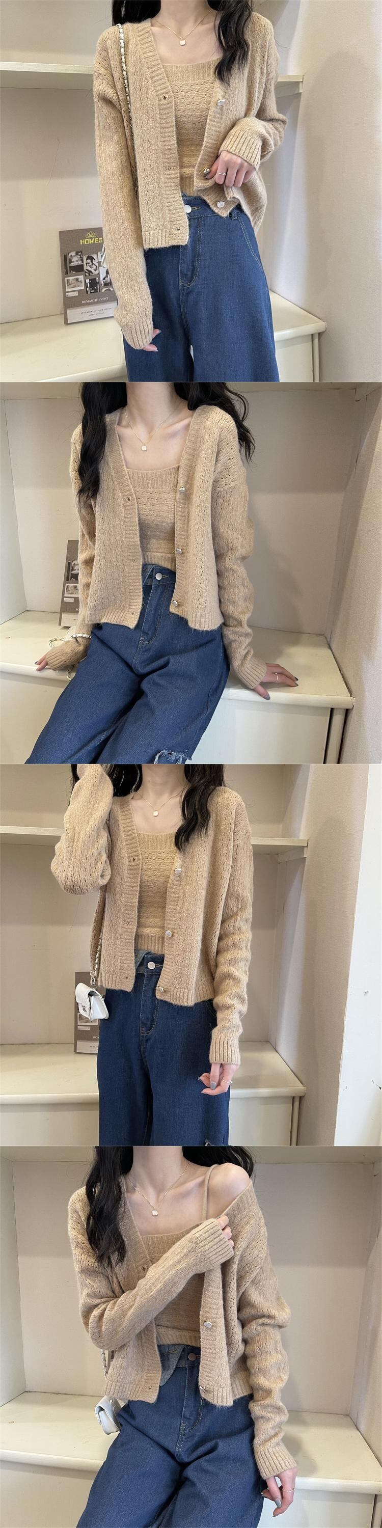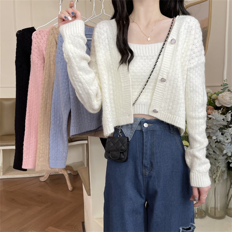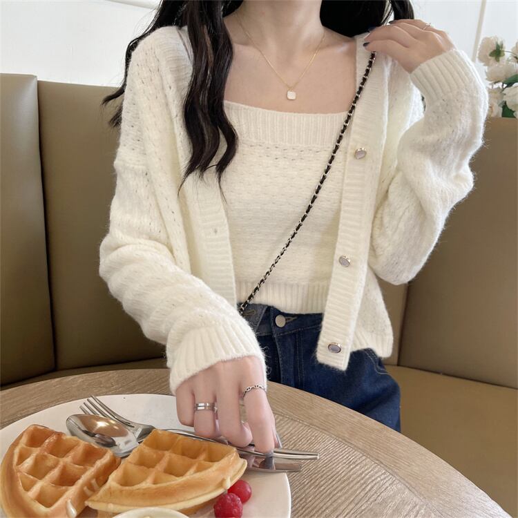 韓国ファッションスタイルスプリング秋物ショートスリムニットカーディガントップス 春物 オータム コーデ Marchs10608355950