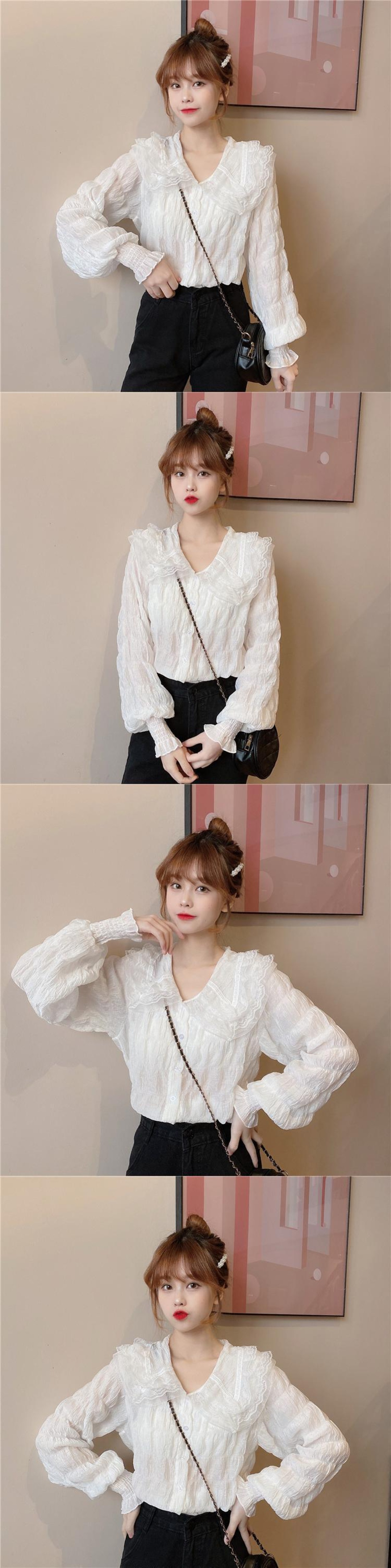 スプリングレースシャツ スタイルカラー 大人ガーリー スウィート キュート カジュアル 春物 コーデ Marchs98092724905