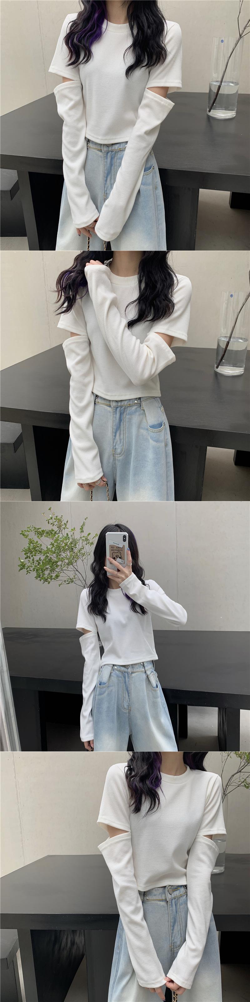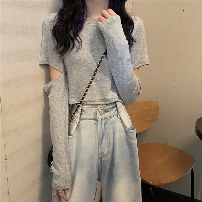 NEWショートトップス スプリング秋物ハイウェストシャツゆったり ロング 春物 オータム Tシャツ 長袖 ウエスト コーデ Marchs82304145188