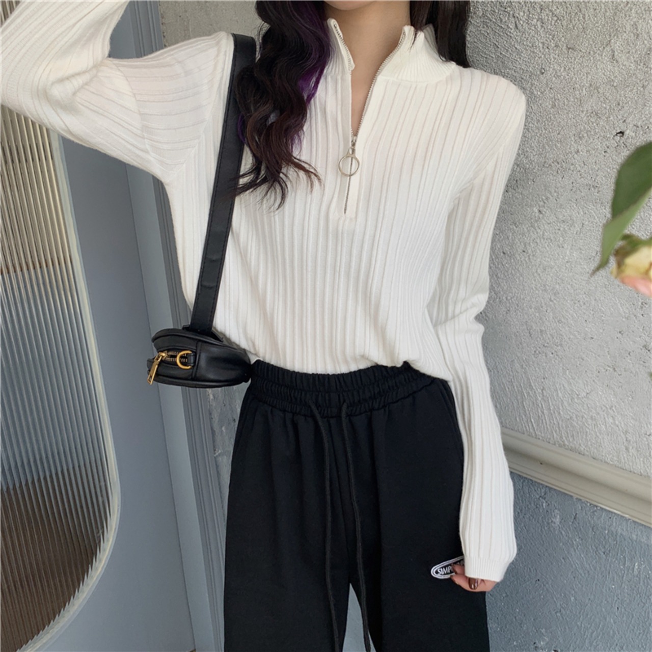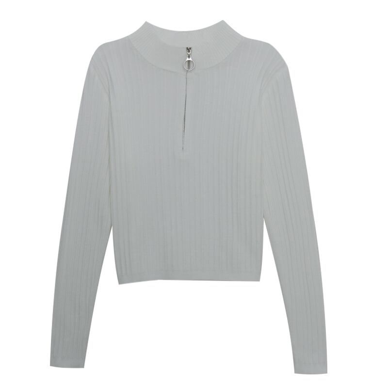 ホワイトカラージッパーセーター ニットゆったりシャツ ロング 長袖 コーデ Marchs38267601109