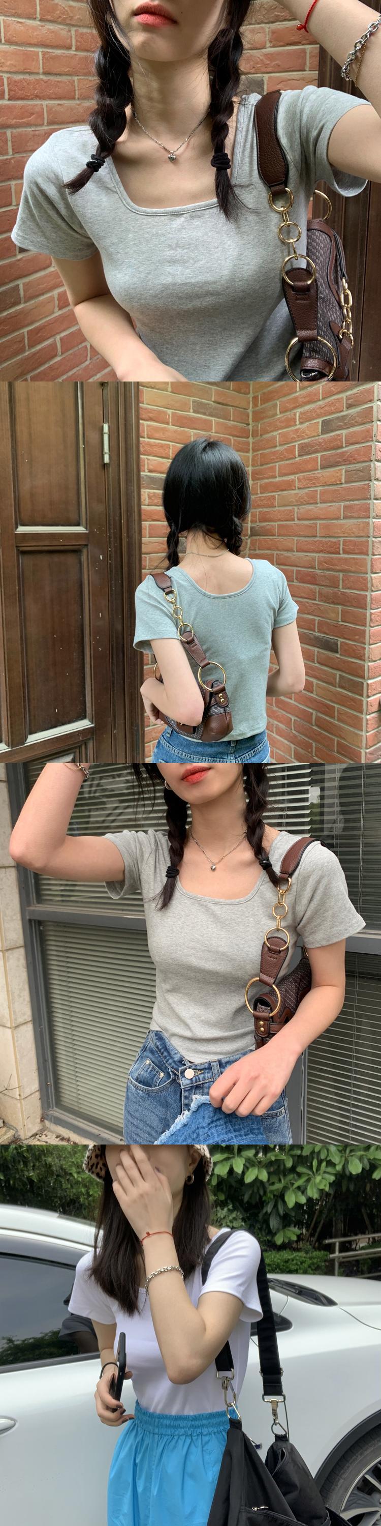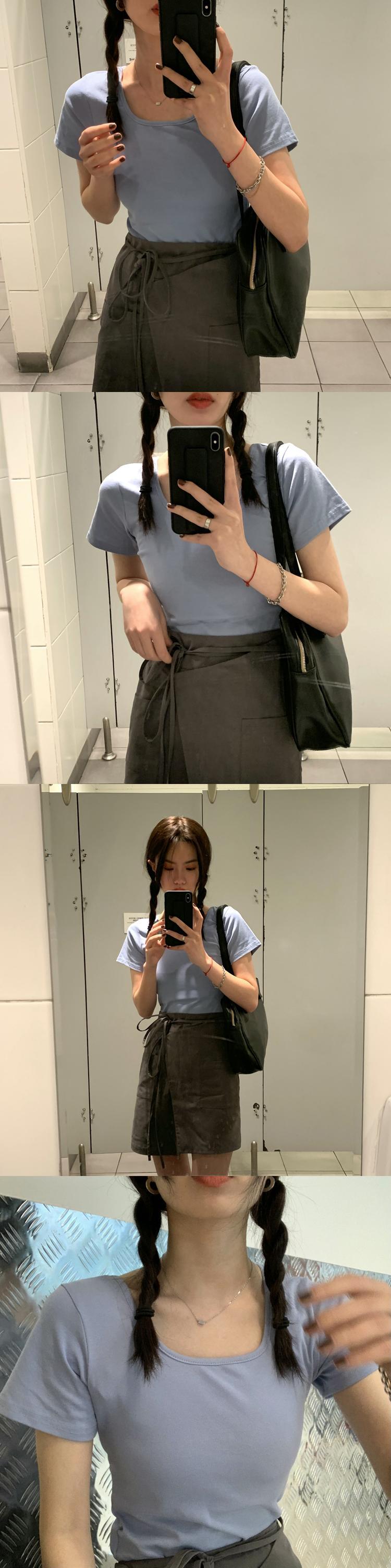 カラーショートTシャツ夏服ワンピースソリッド ベーシックトップス NEW 夏物 ソリッドカラー スクウェア コーデ Marchs12522298008