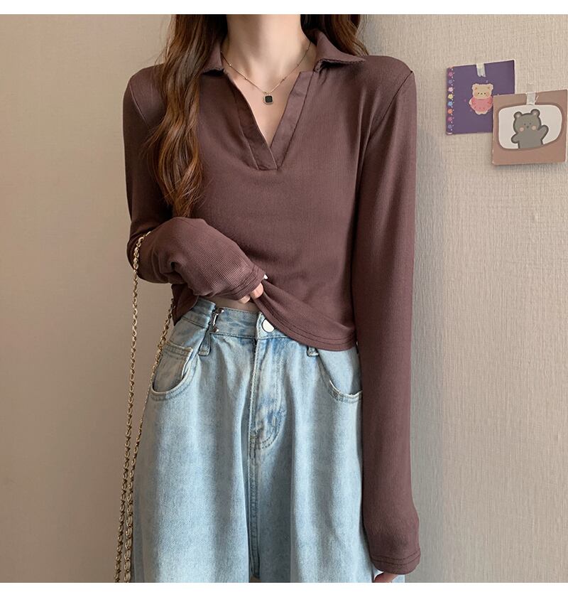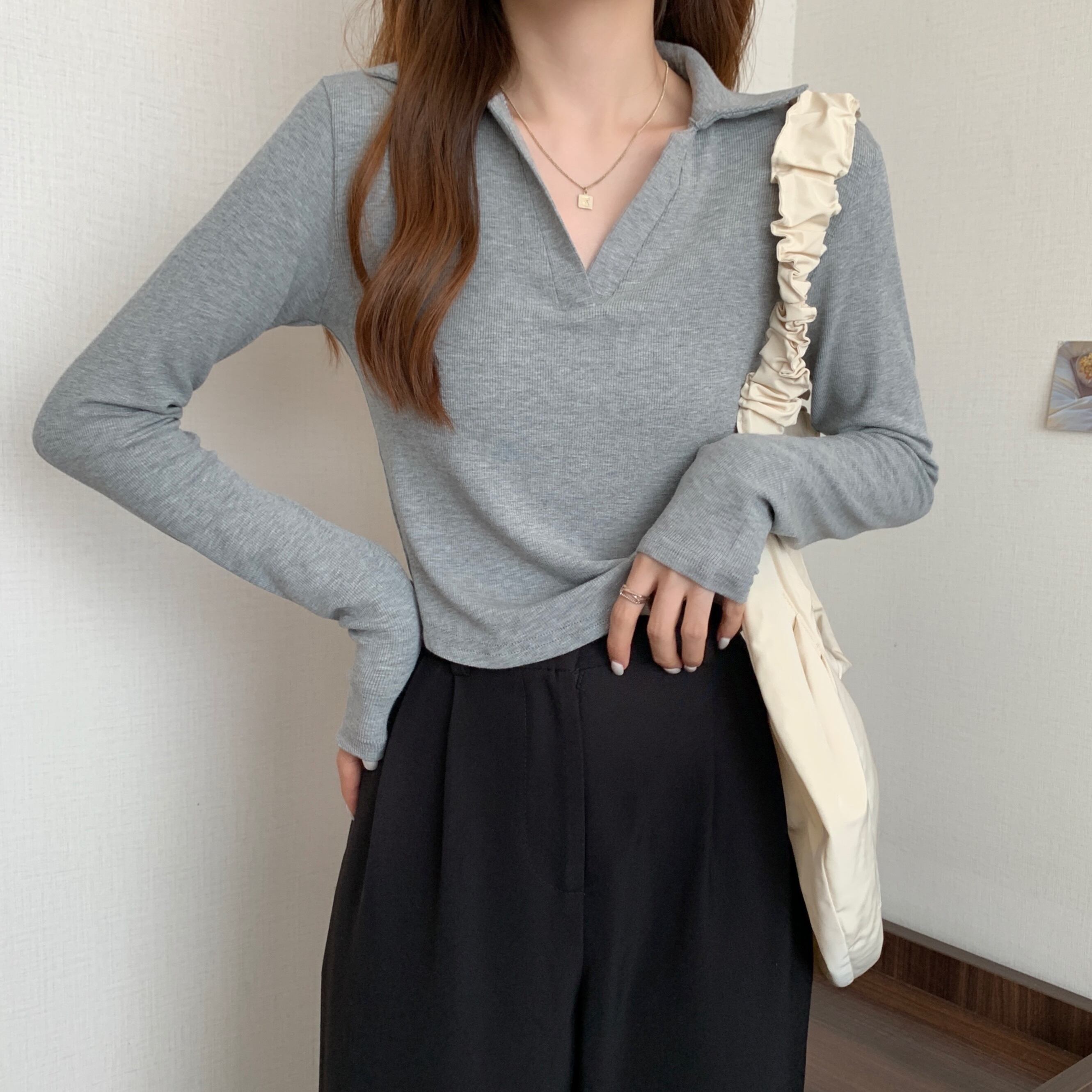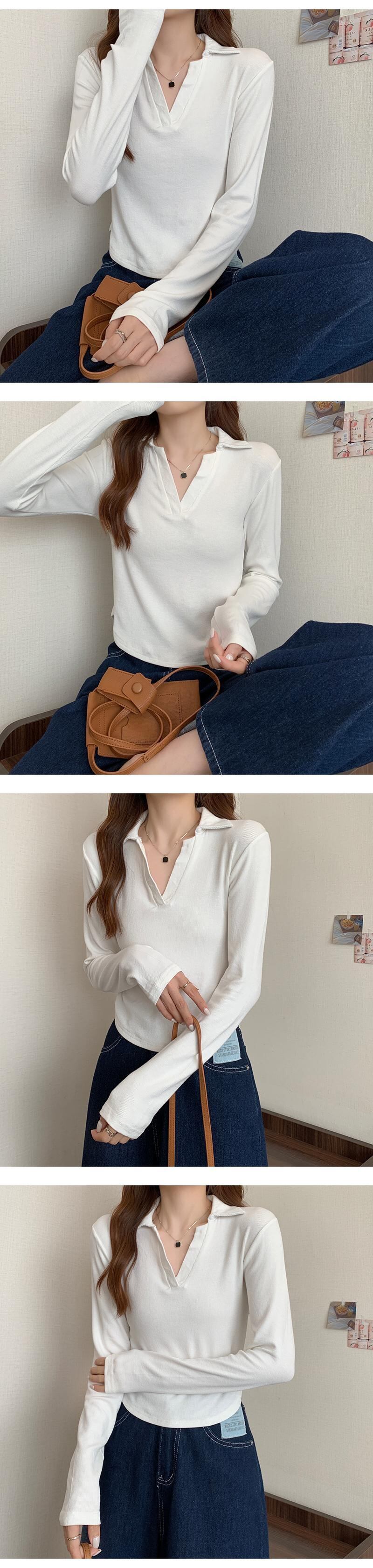 VネックホワイトTシャツシャツ スプリング秋物スタイルショートゆったりトップス ロング 春物 オータム 長袖 コーデ Marchs63757016631