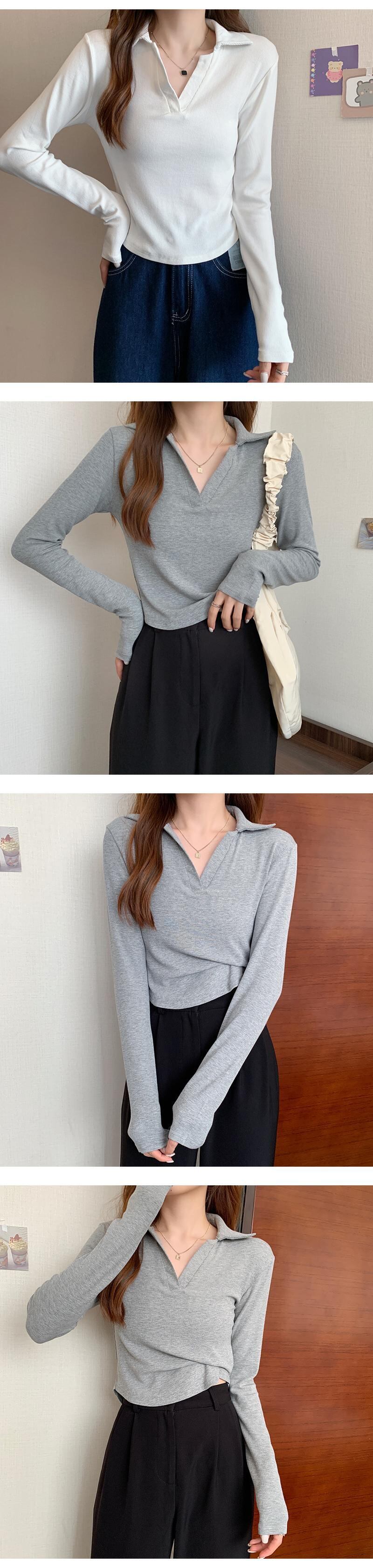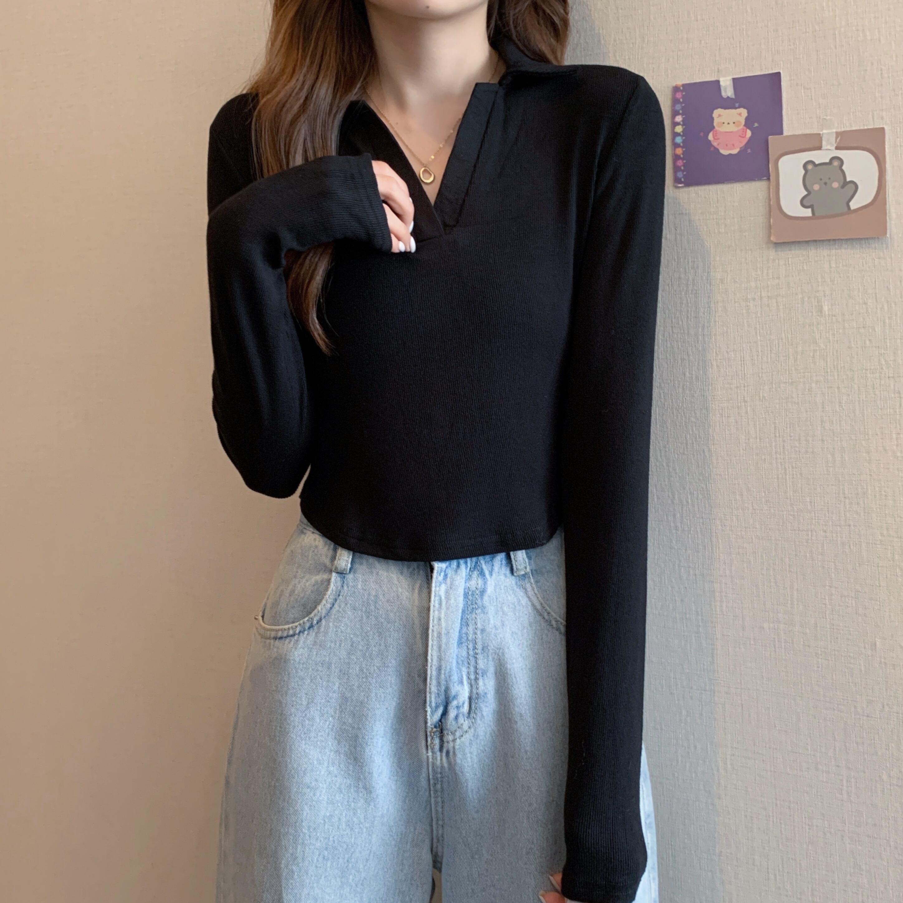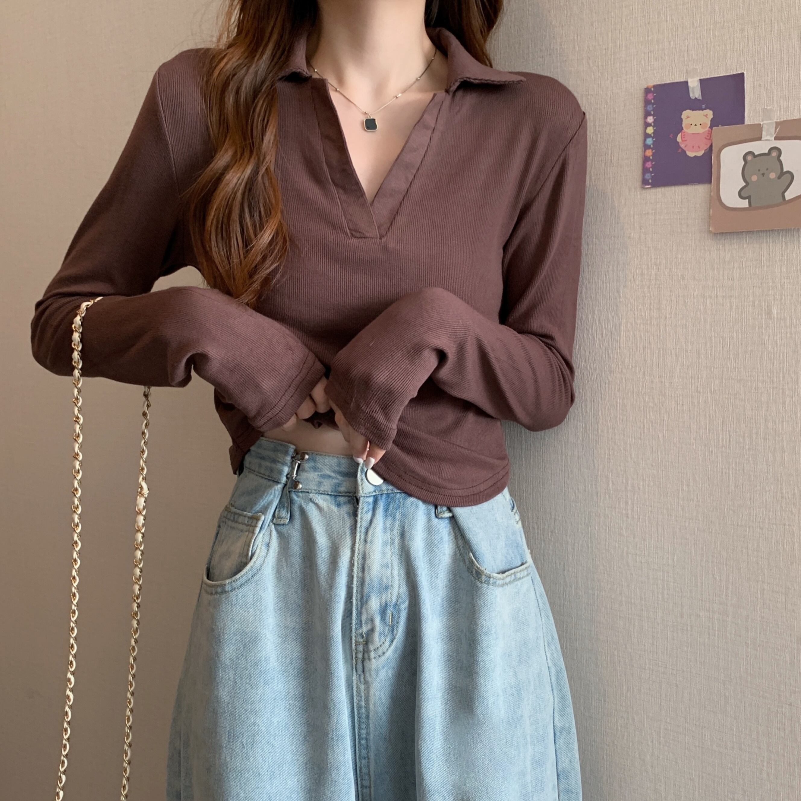 VネックホワイトTシャツシャツ スプリング秋物スタイルショートゆったりトップス ロング 春物 オータム 長袖 コーデ Marchs63757016631