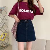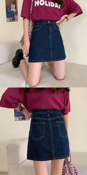 スタンダードブルースカート スプリング秋物ハイウェストウェストAラインショート レトロ 春物 オータム ウエスト コーデ Marchs83101076492