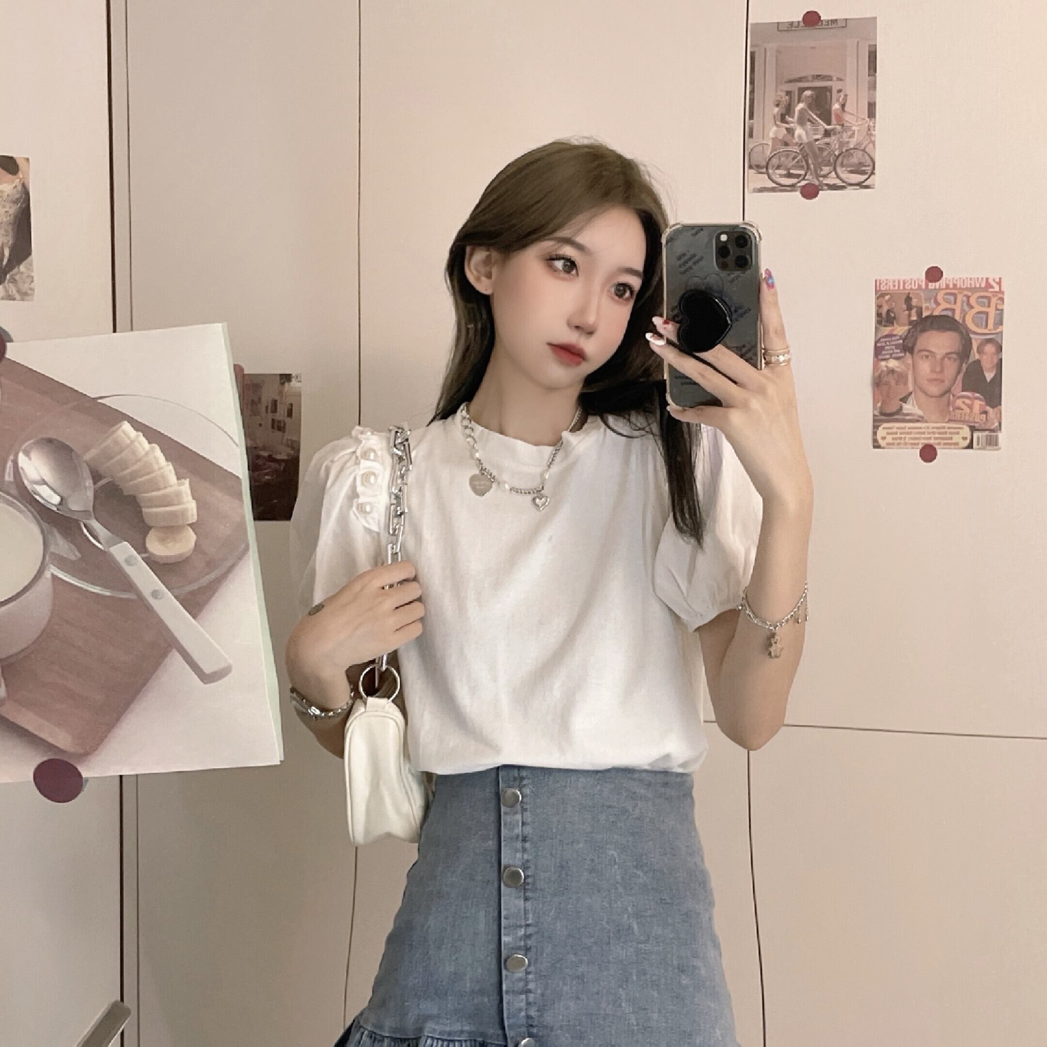 スプリングルーズホワイトショートスリーブTシャツ夏服薄手ラウンドネックトップス 春物 夏物 Oネック ステッチ コーデ Marchs17886891976