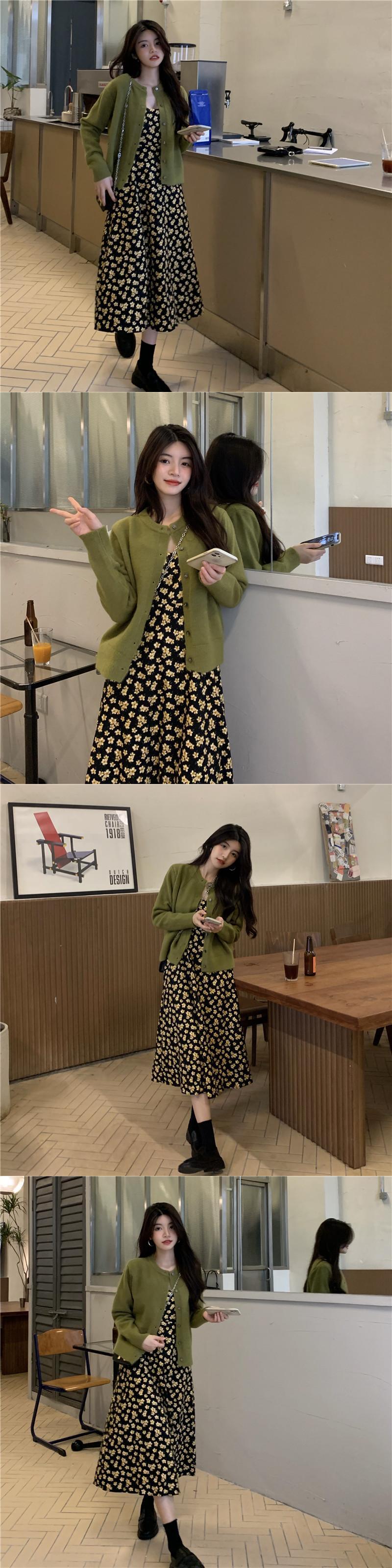 スタンダードコーデュロイフローラルワンピースレディーススプリング夏服ニットカーディガンスカート レトロ 春物 夏物 花柄 コーデ Marchs45810588477