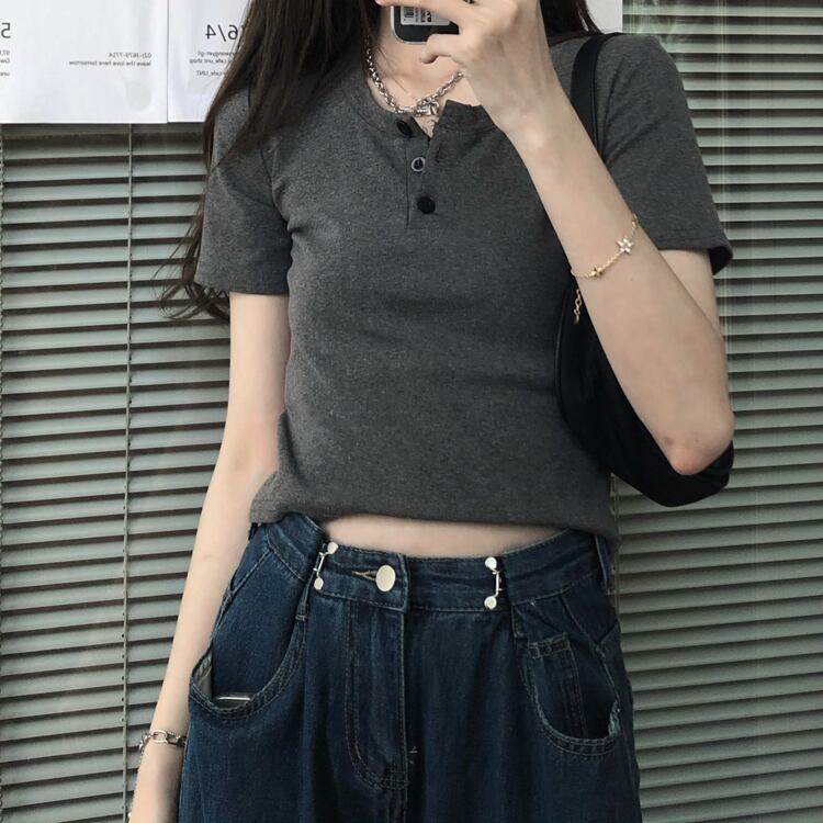 グレーショートTシャツ夏服ゆったりシャツトップス コットン 夏物 コーデ Marchs72105081729