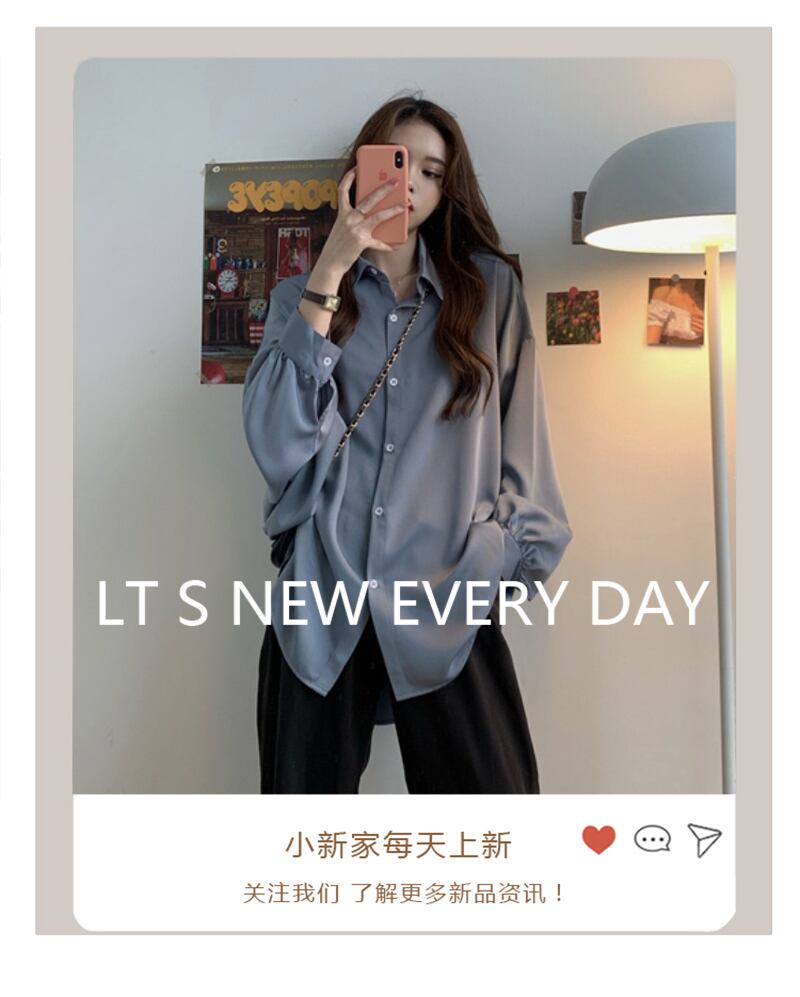 サテンシャツ カーディガンスプリングルーズブルー長袖スリーブドレープトップス ロング 大きめサイズ 春物 シルク コーデ Marchs84378340263