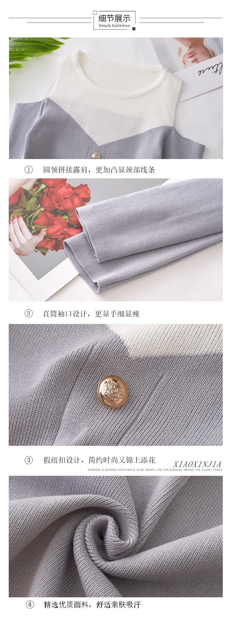 スタイルハートトップス ショートニットゆったりシャツ 夏服 ロング 夏物 ステッチ 長袖 コーデ Marchs34397967410