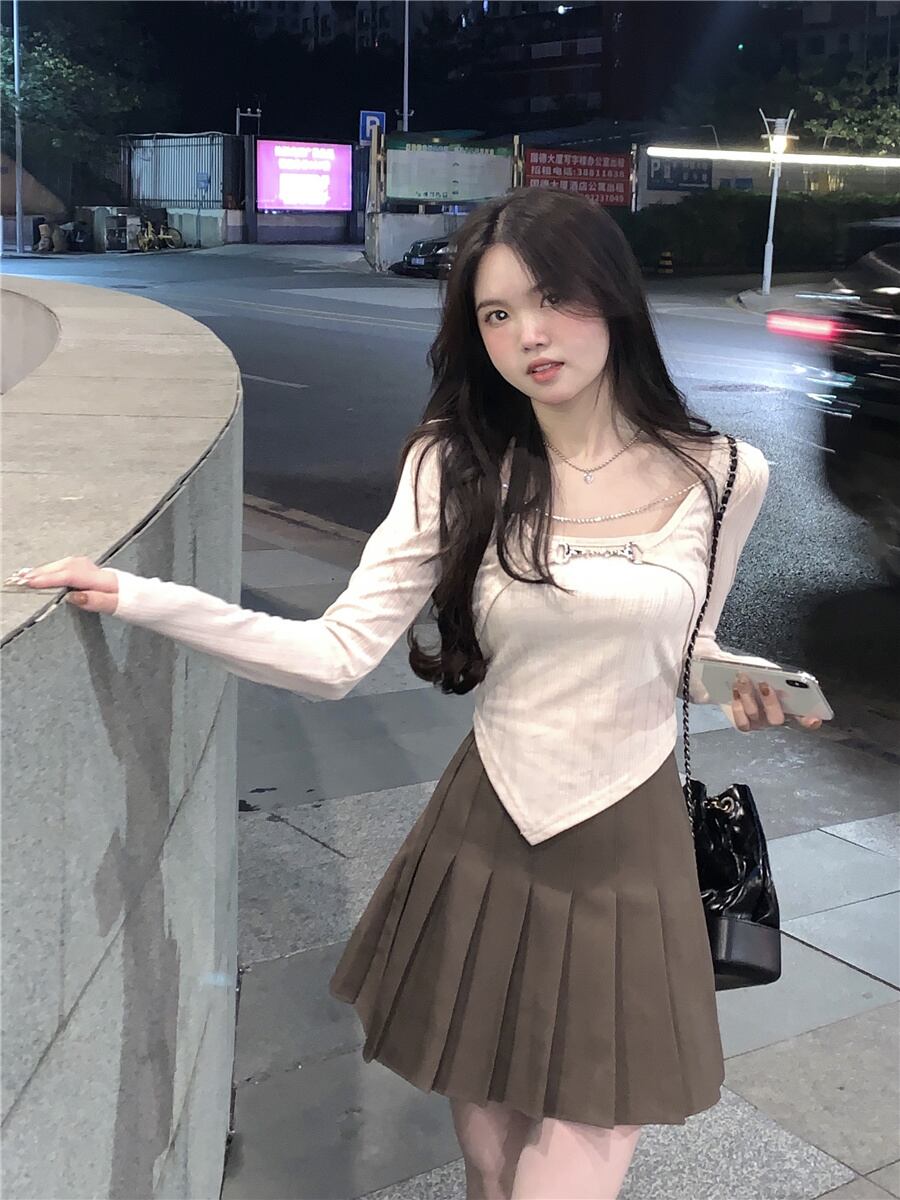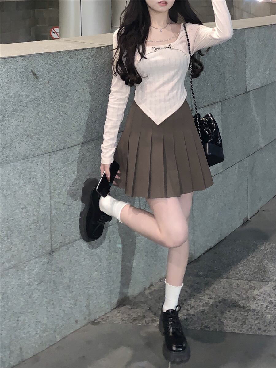 Tシャツスプリングショートトップス ロング 春物 長袖 コーデ Marchs61019610663