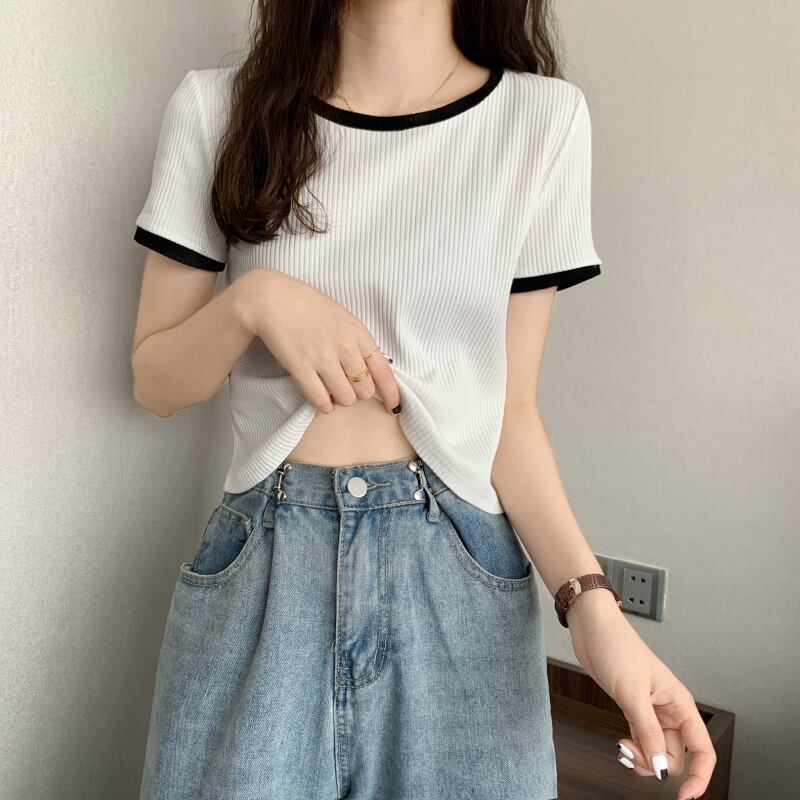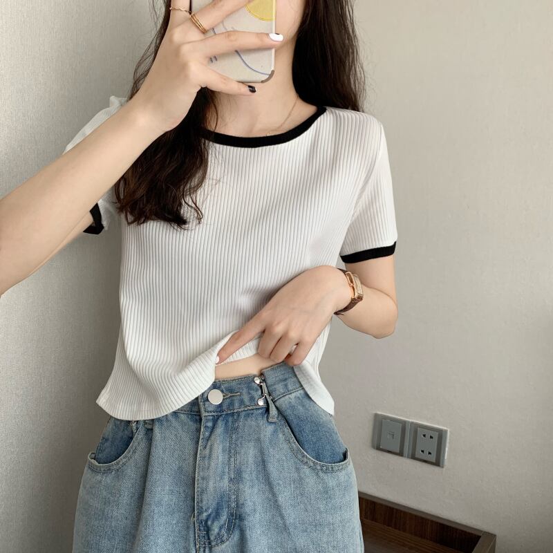 スプリング韓国ファッションスリムショート 春物 Tシャツ スクウェア スタイル コーデ Marchs70255962601