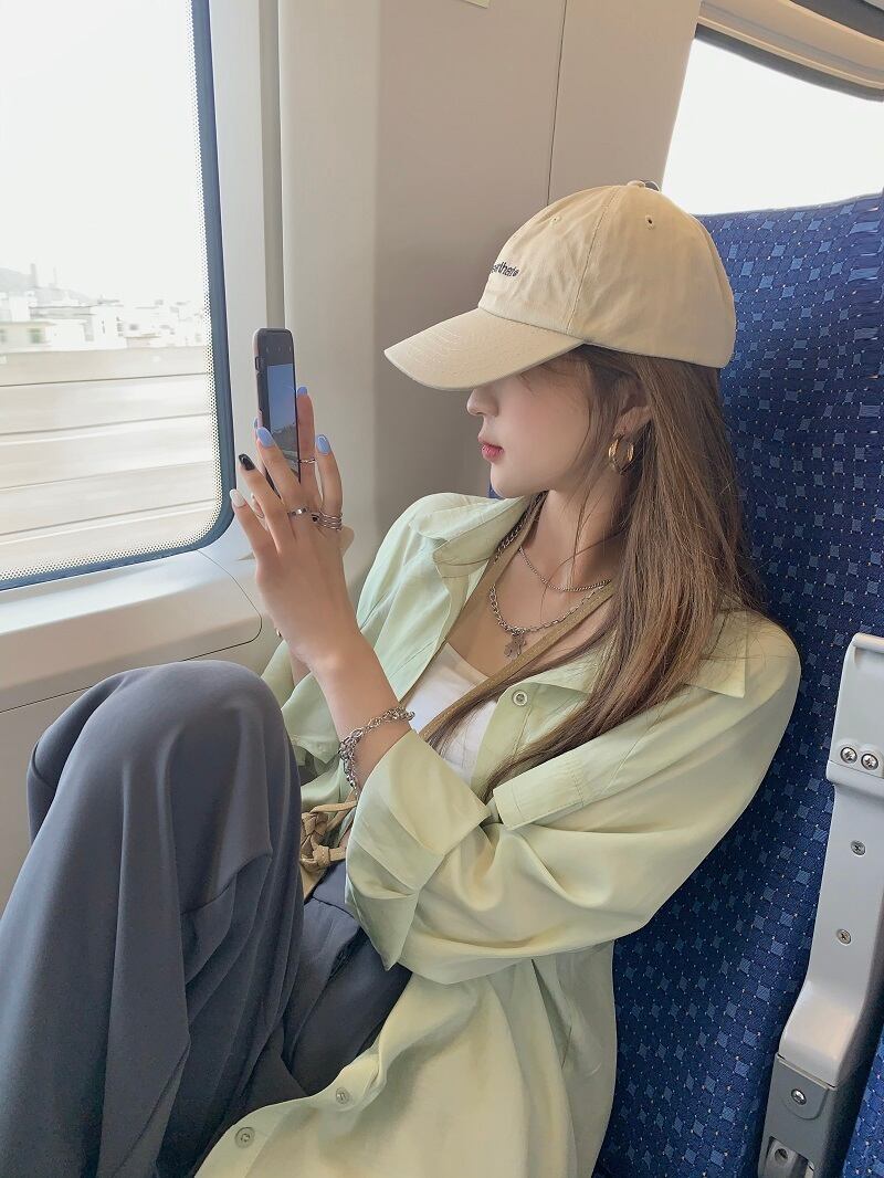 グリーンシャツ スプリングロングルーズカジュアル薄手トップス レッド 春物 コーデ Marchs53102857774