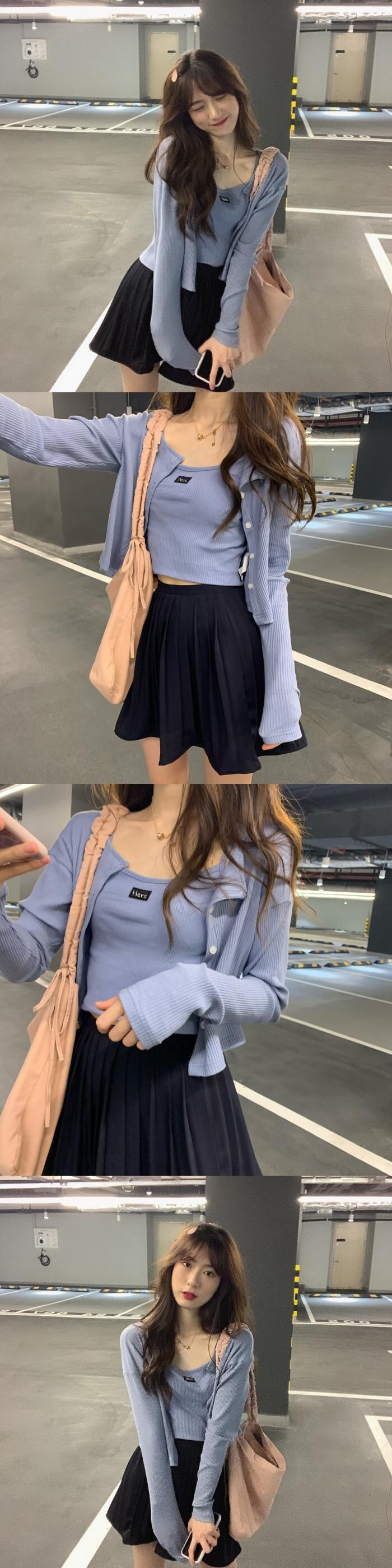色:白いプリーツスカート,ダークブルーのプリーツスカート,ツーピースグレーベストカーディガン,ツーピースブルーベストカーディガン,ツーピースピンクのベストカーディガン