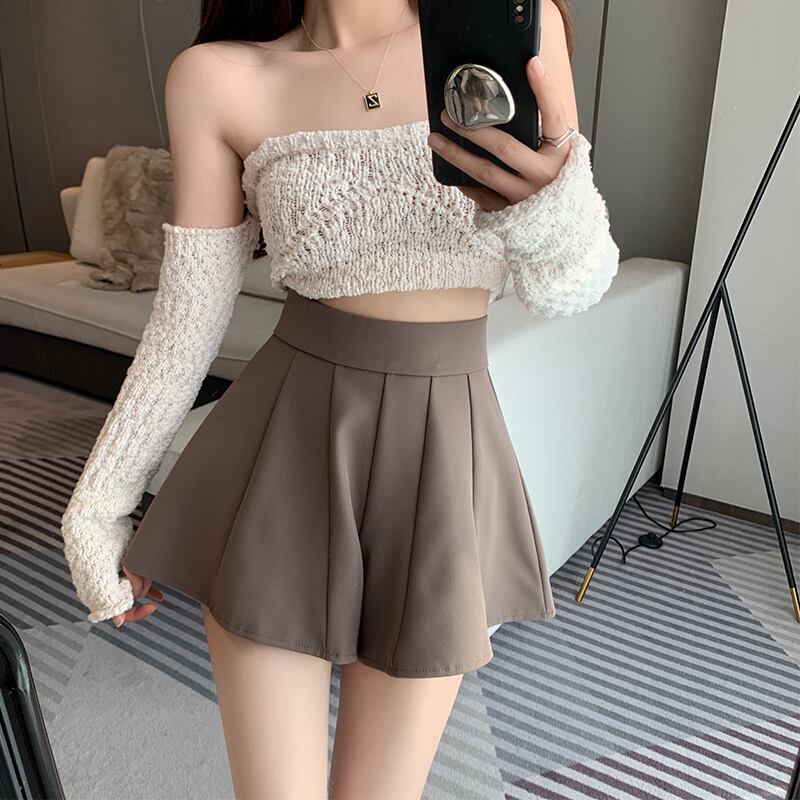ホワイトプリーツスカート ハイウェストウェストAラインショートスプリング 春物 ウエスト コーデ Marchs83316938049