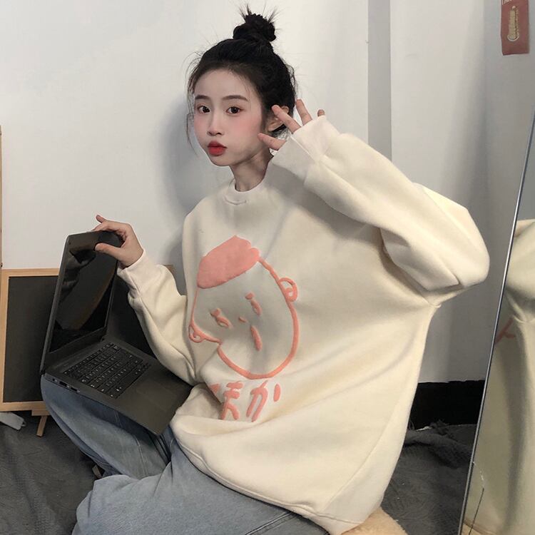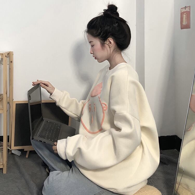 ラウンドネックルーズセーター スプリング秋物NEW厚みプリント柄トップス 大人ガーリー スウィート キュート カジュアル 春物 オータム Oネック コーデ Marchs2765416333