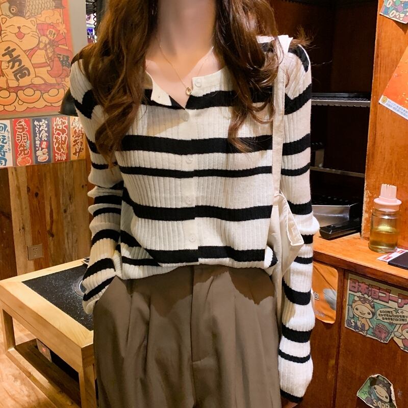 スプリングスリムTシャツシャツ ニットトップス スタイルストライプゆったり ロング 春物 長袖 コーデ Marchs29904858994