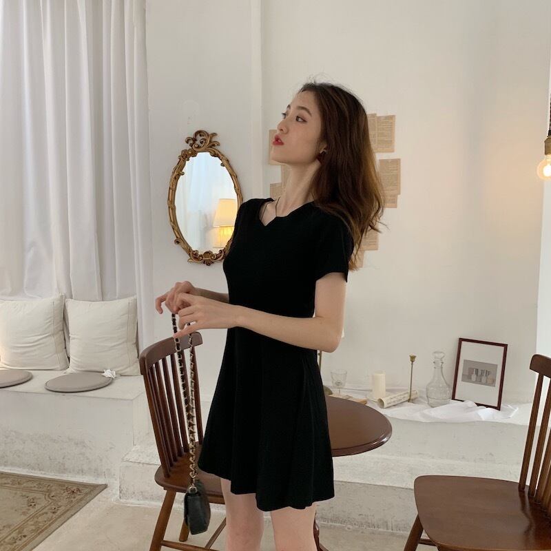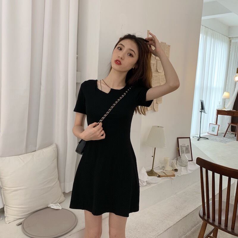 スカート レディース夏服スタンダードウェスト薄手ラウンドネックAラインワンピース レトロ 夏物 Oネック ウエスト コーデ Marchs64262907397