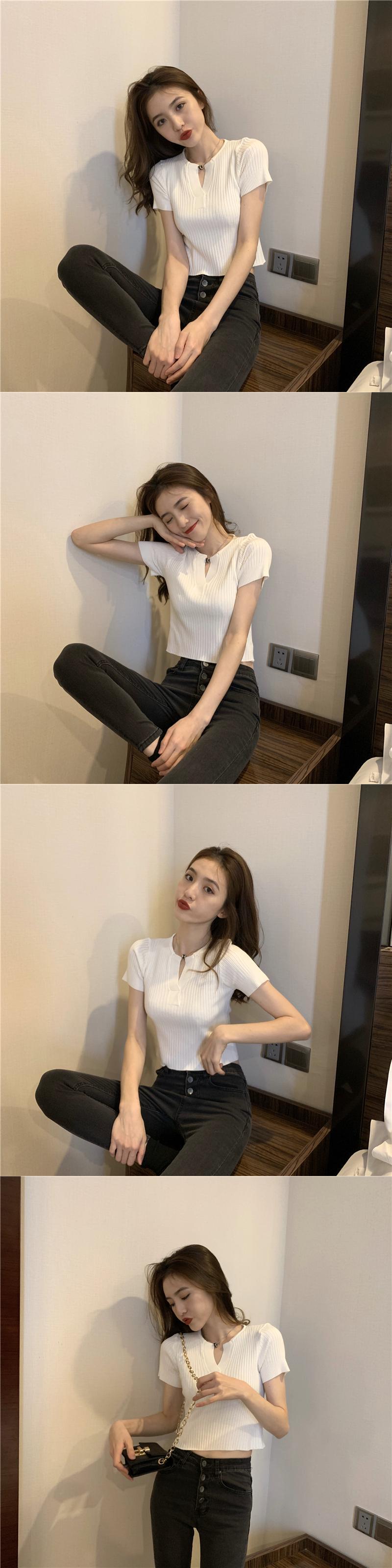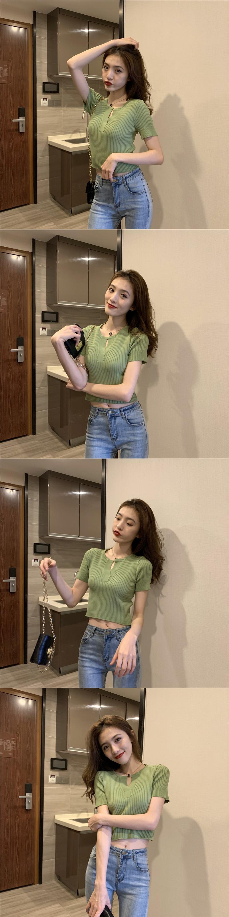 夏服NEWスタンダードショートトップス 韓国ファッションニットレディース レトロ シャツ 夏物 Tシャツ ヨーロピアン スタイル コーデ Marchs86999200894