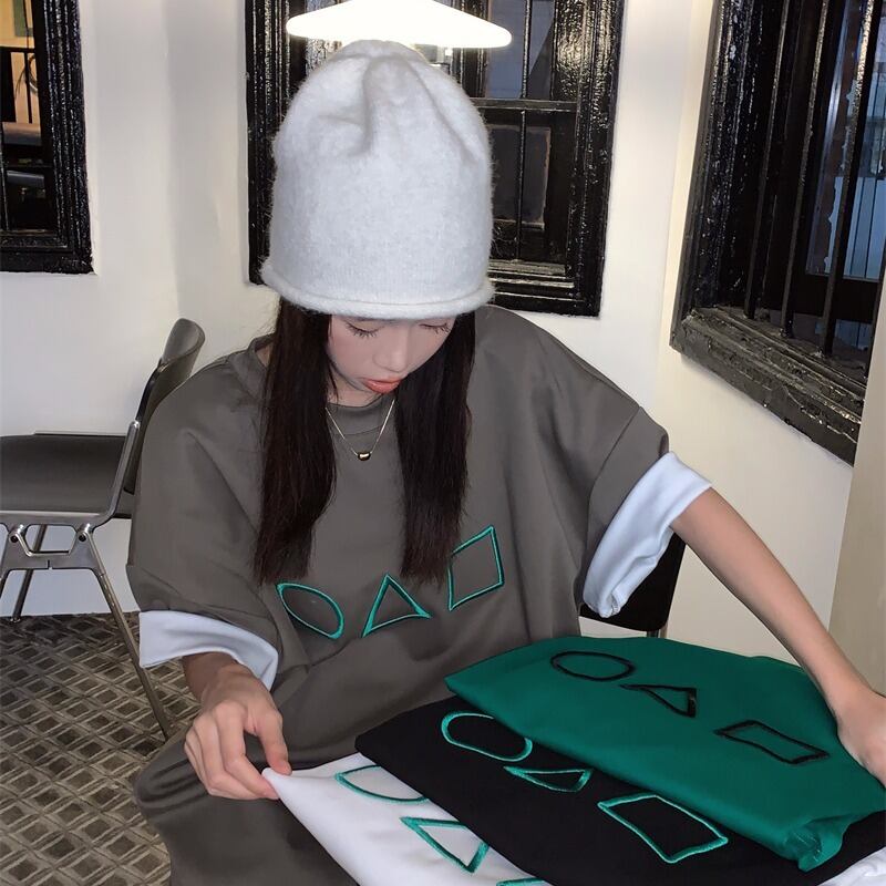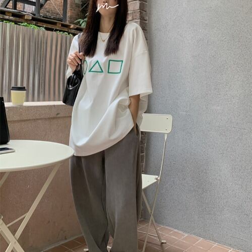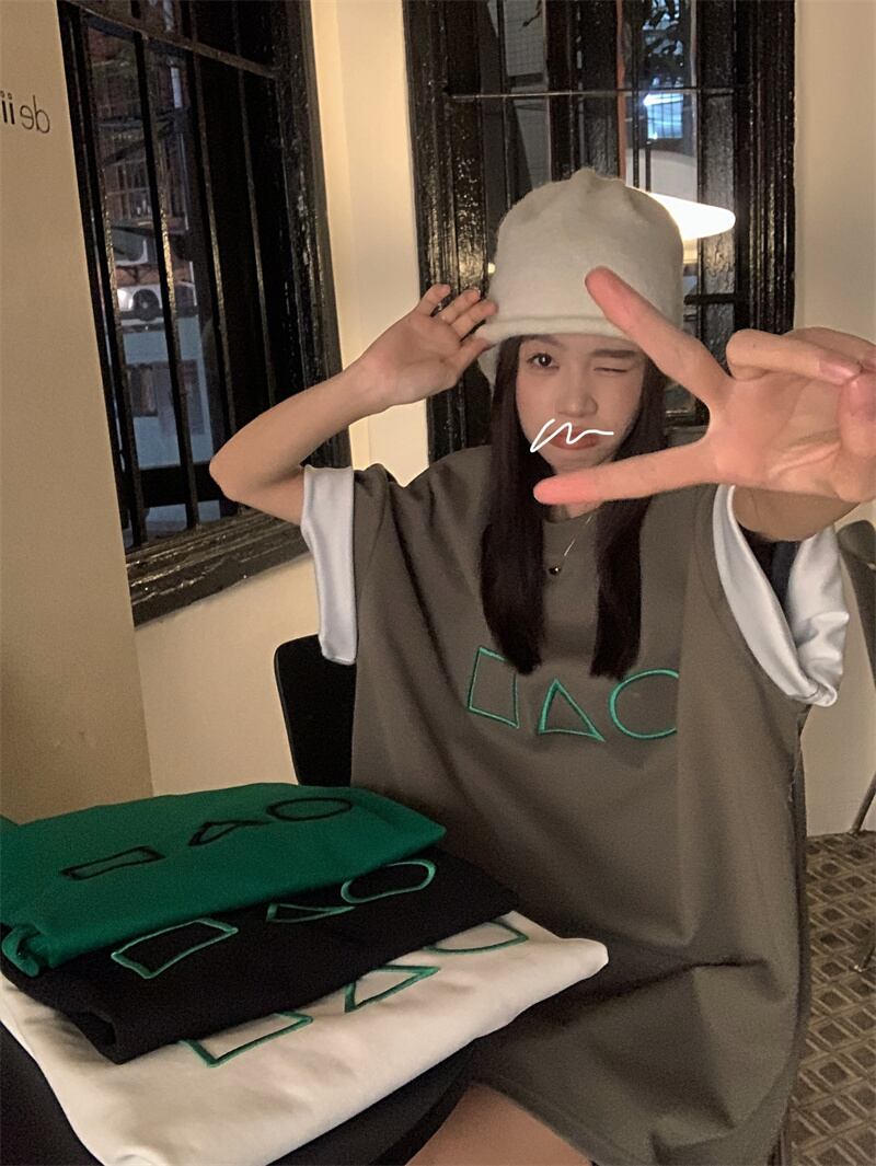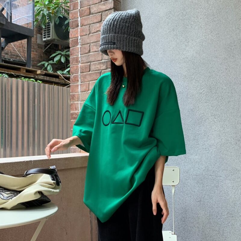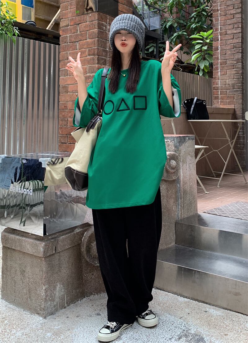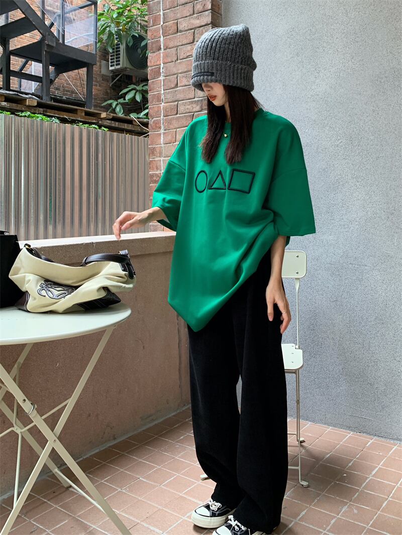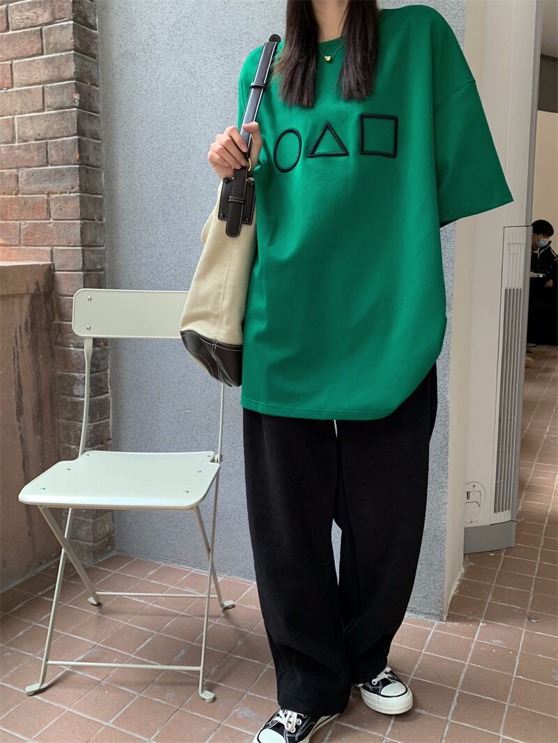 グリーン刺繍Tシャツ夏服韓国ファッションルーズトップス NEW 夏物 スタイル コーデ Marchs7388708052