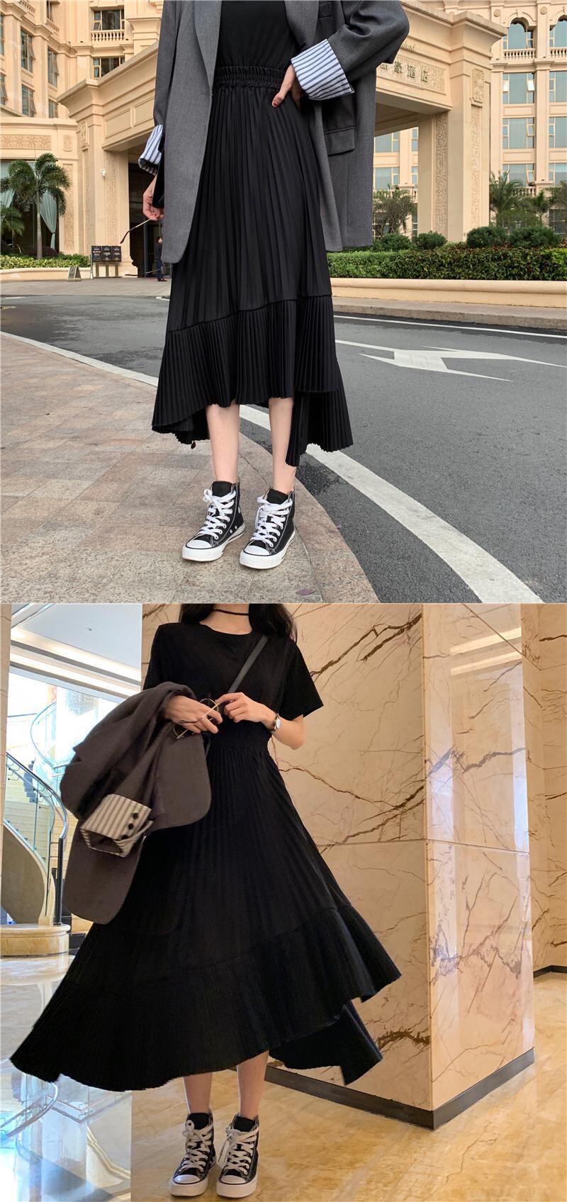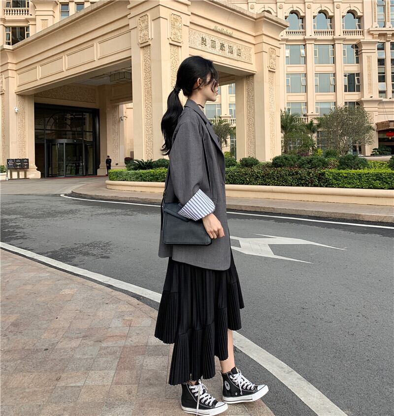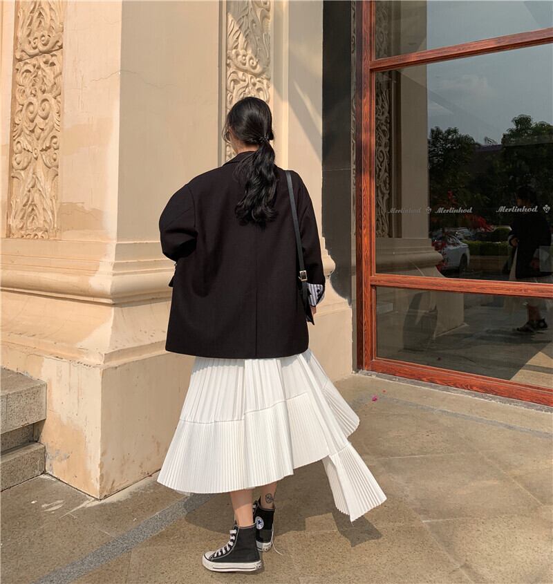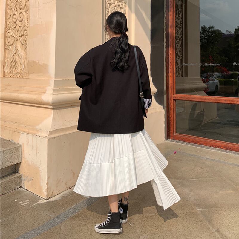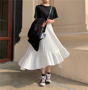 シフォンスカート スプリング秋物ハイウェストウェスト薄手ルーズプリーツロング 春物 オータム ウエスト ミドル丈 コーデ Marchs80430540976