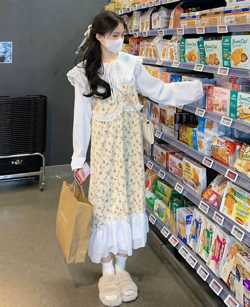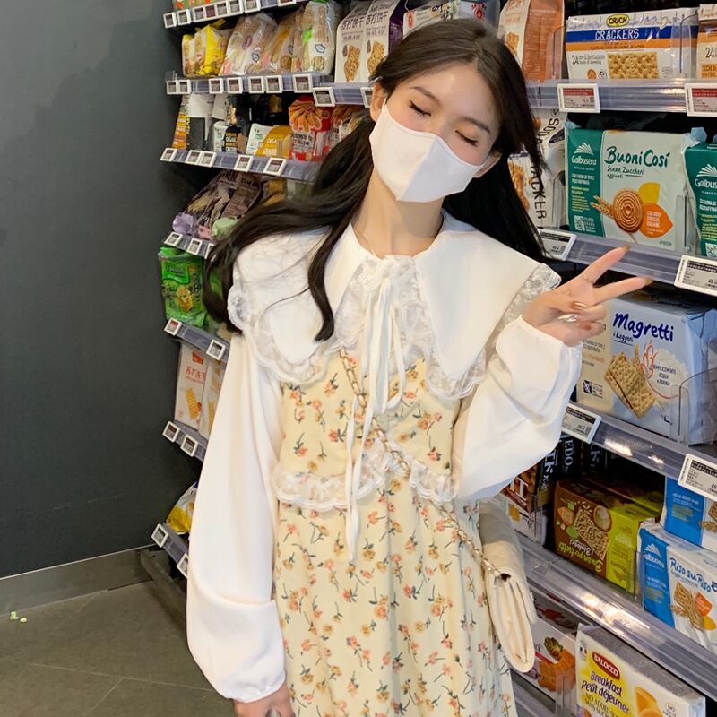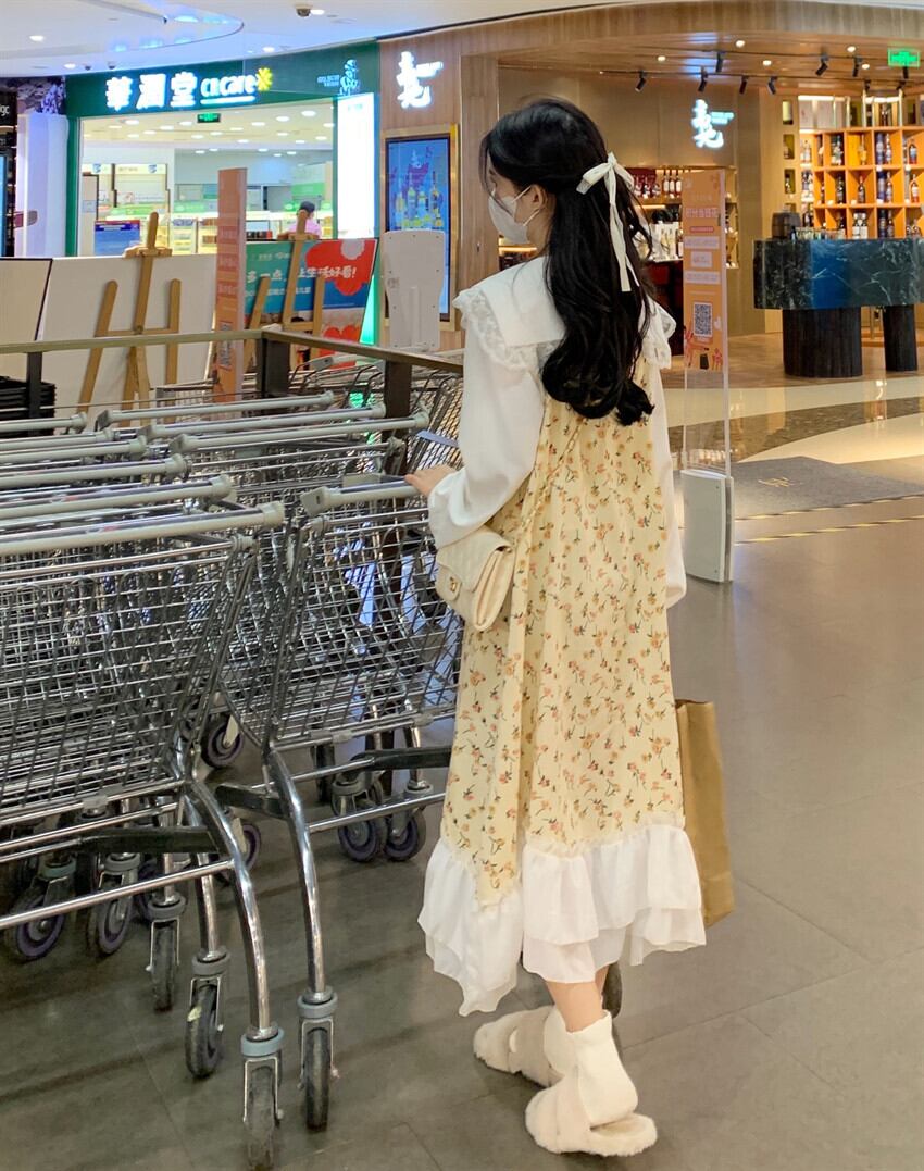 スプリングイエローフローラルワンピースレディーススカート 大人ガーリー スウィート キュート カジュアル 春物 花柄 コーデ Marchs20536837478