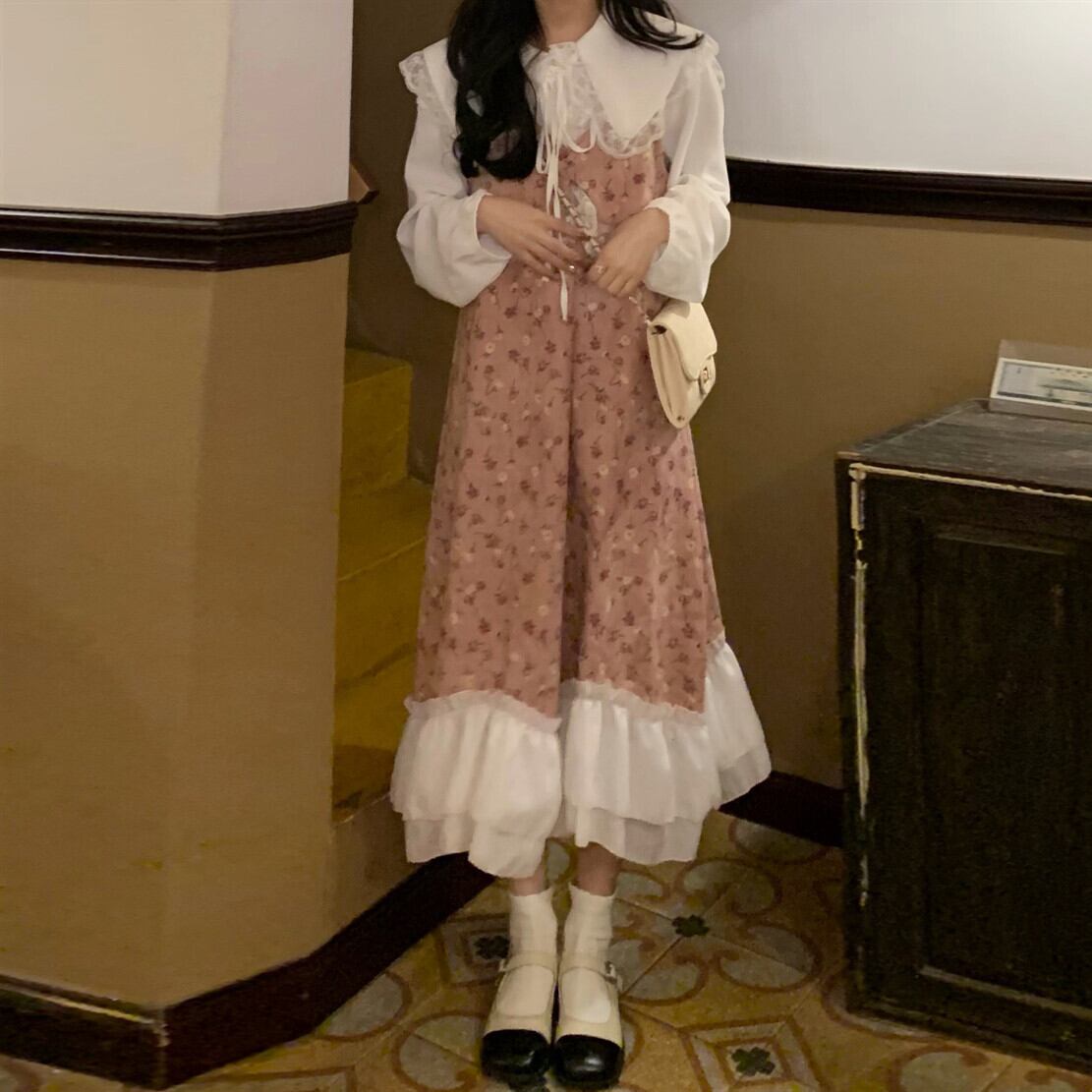 色:白のシャツ,アプリコットフローラルスカート,ピンクの花柄スカート