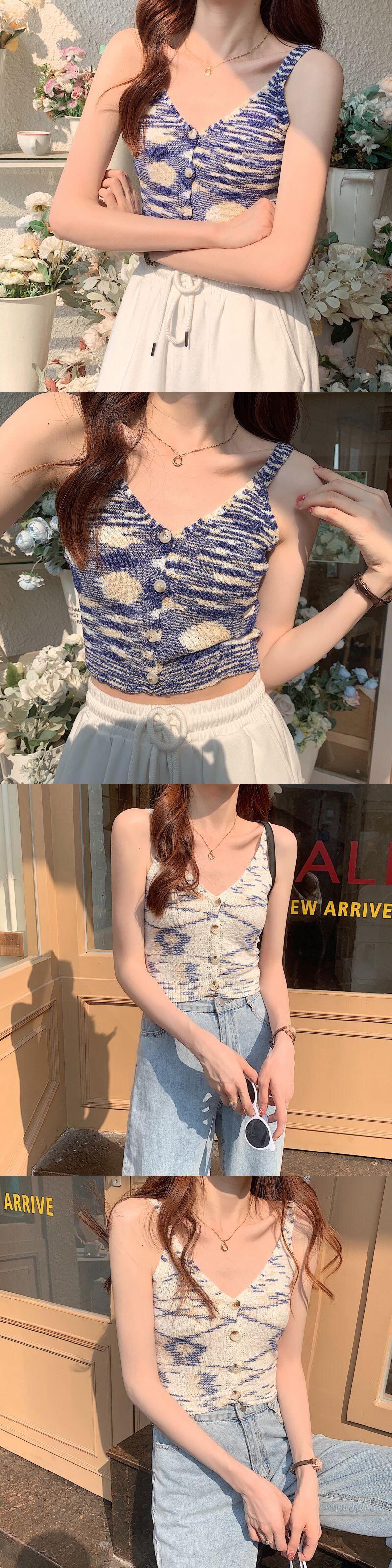 スタイルショートスリムVネックニットゆったりトップス ノースリーブTシャツ コーデ Marchs8671974632
