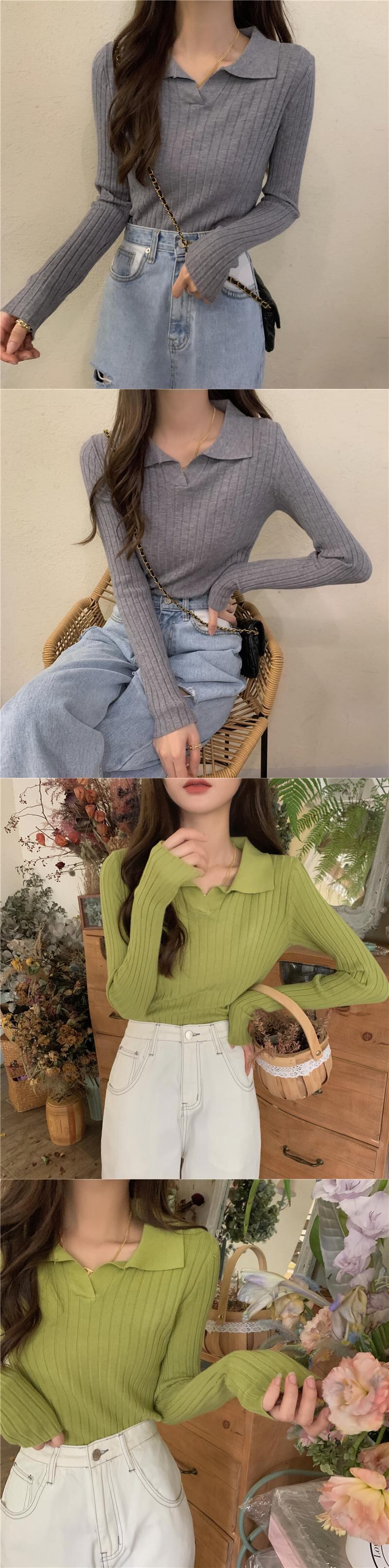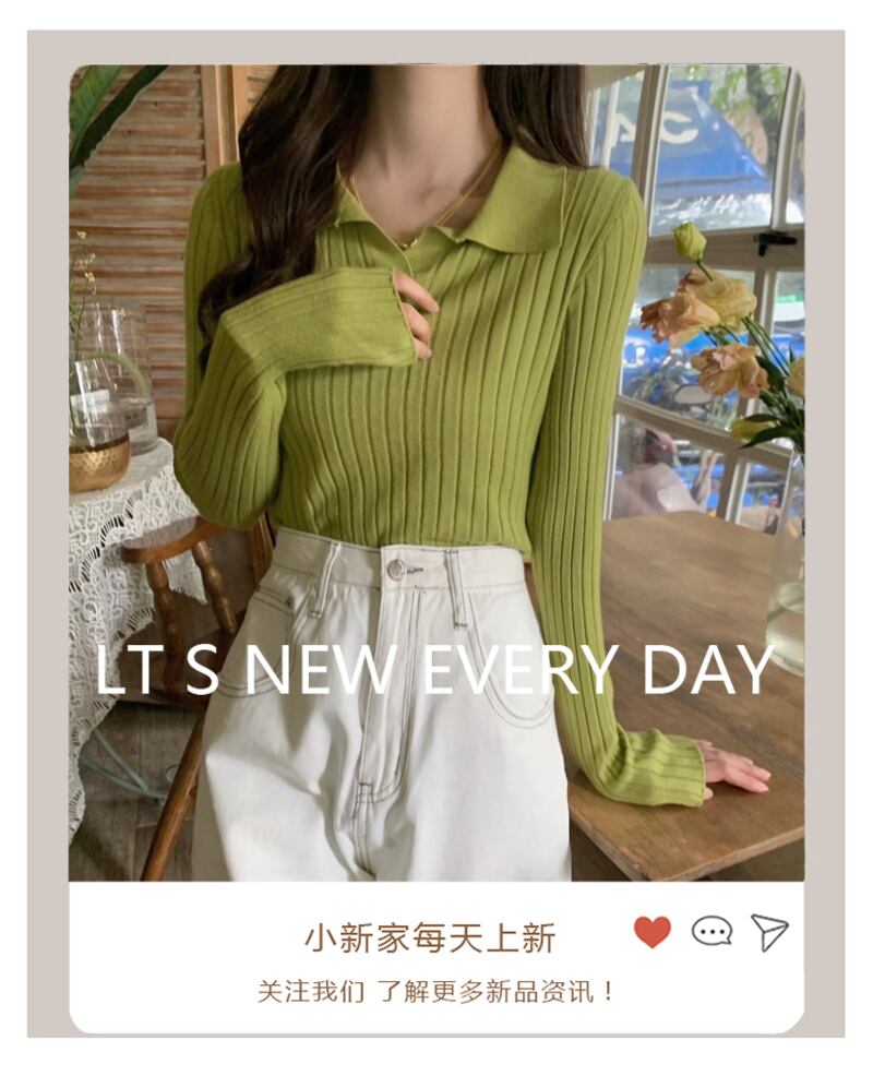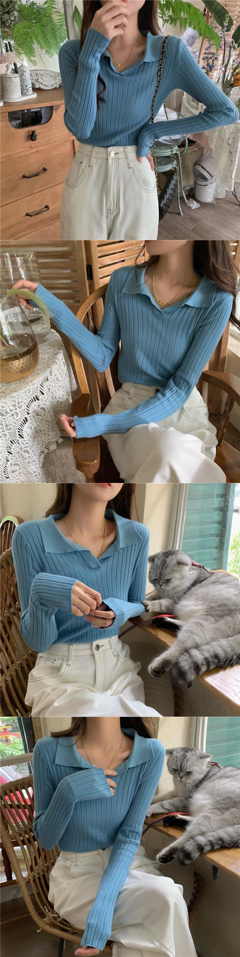 NEWストライプスリムニットセーター 夏服Vネックスタイル ロング 夏物 長袖 コーデ Marchs17642095395