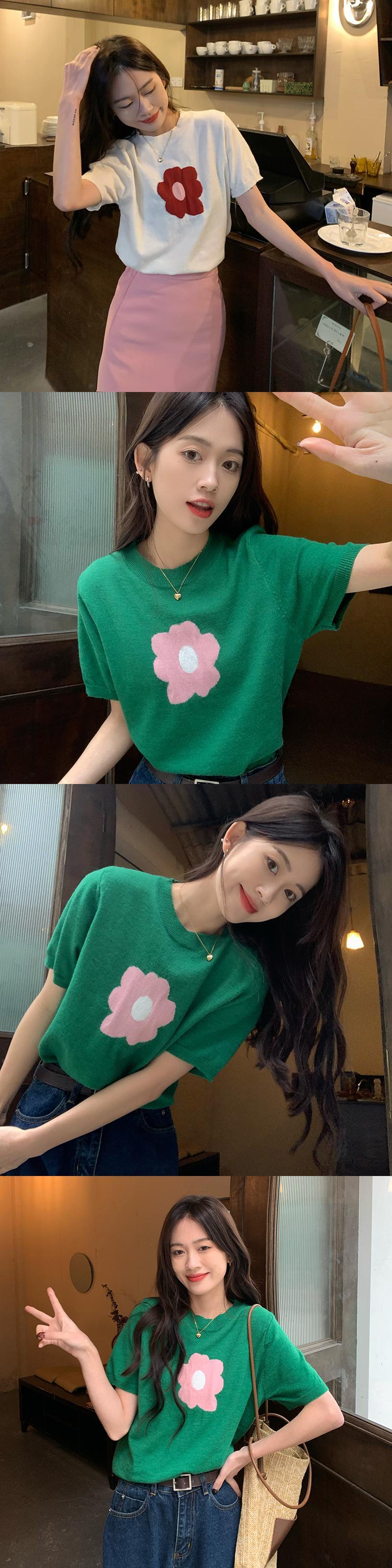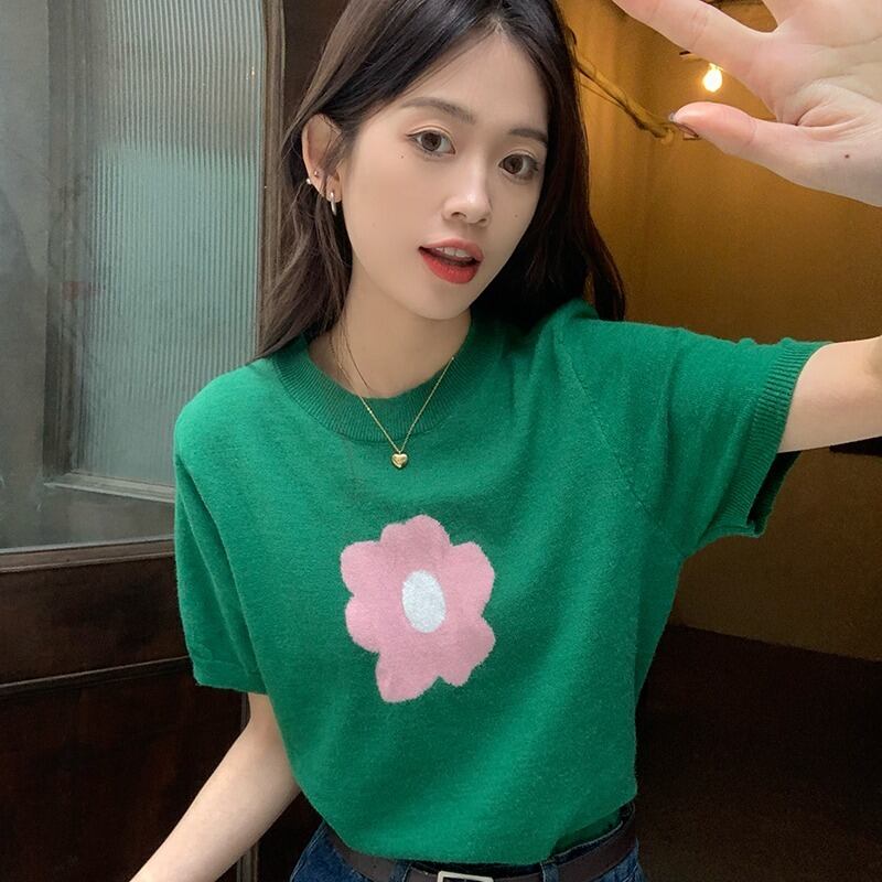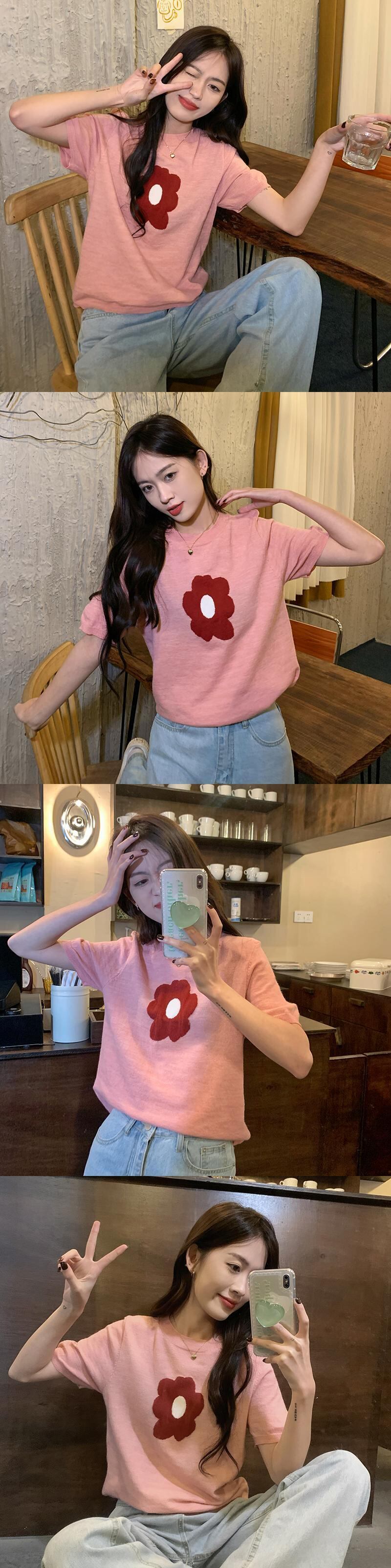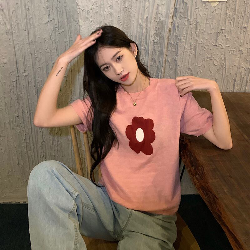 Flowerデザイン ショートTシャツ夏服プルオーバー セーター ルーズトップス NEW 夏物 フラワーデザイン コーデ Marchs32352908583