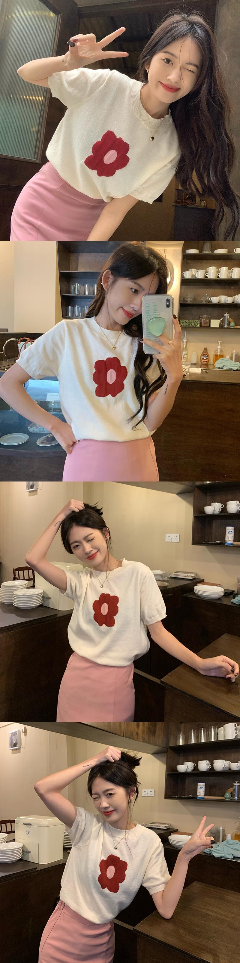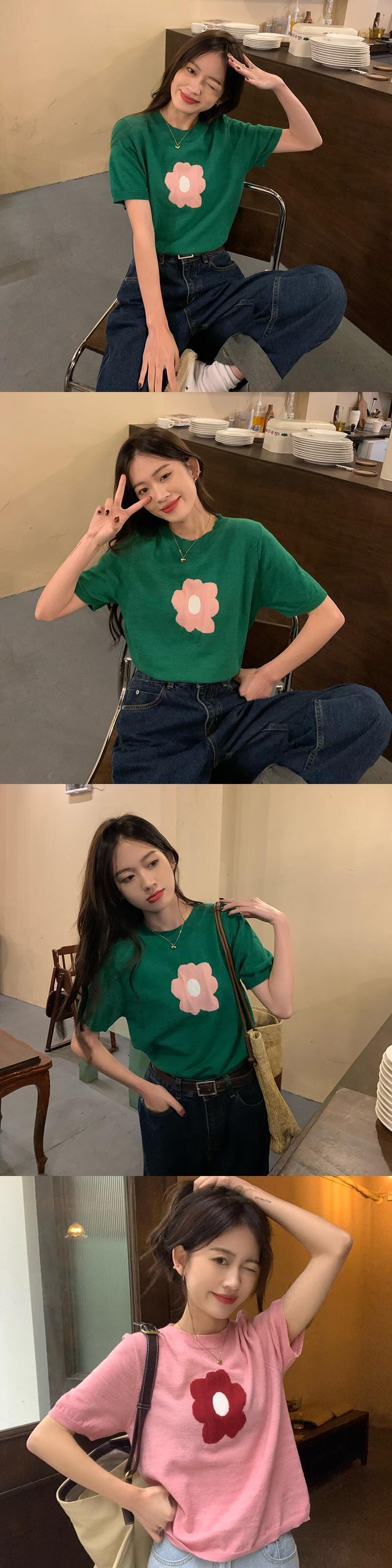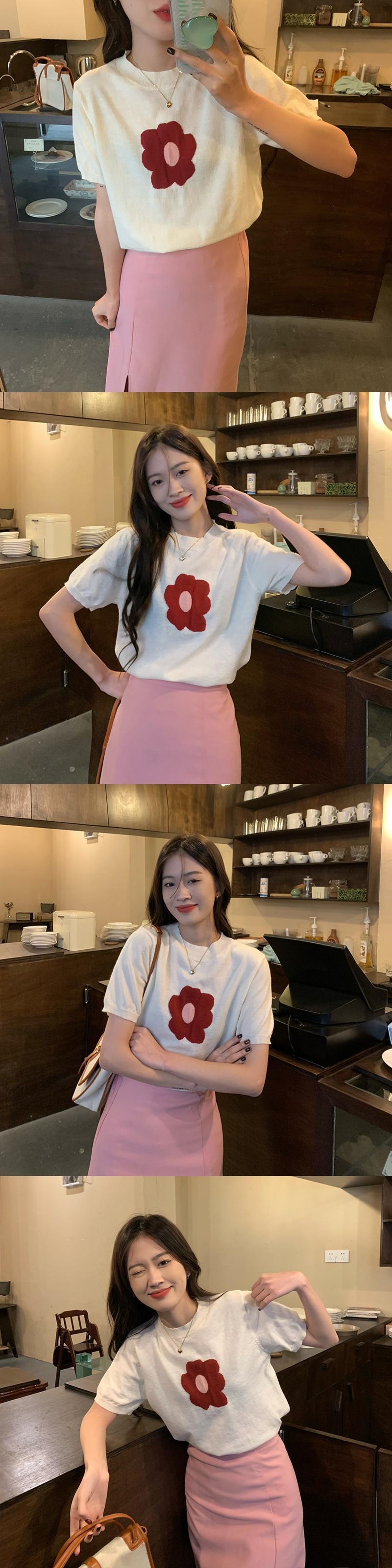 Flowerデザイン ショートTシャツ夏服プルオーバー セーター ルーズトップス NEW 夏物 フラワーデザイン コーデ Marchs32352908583