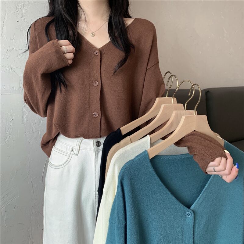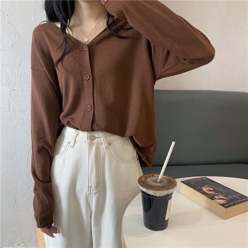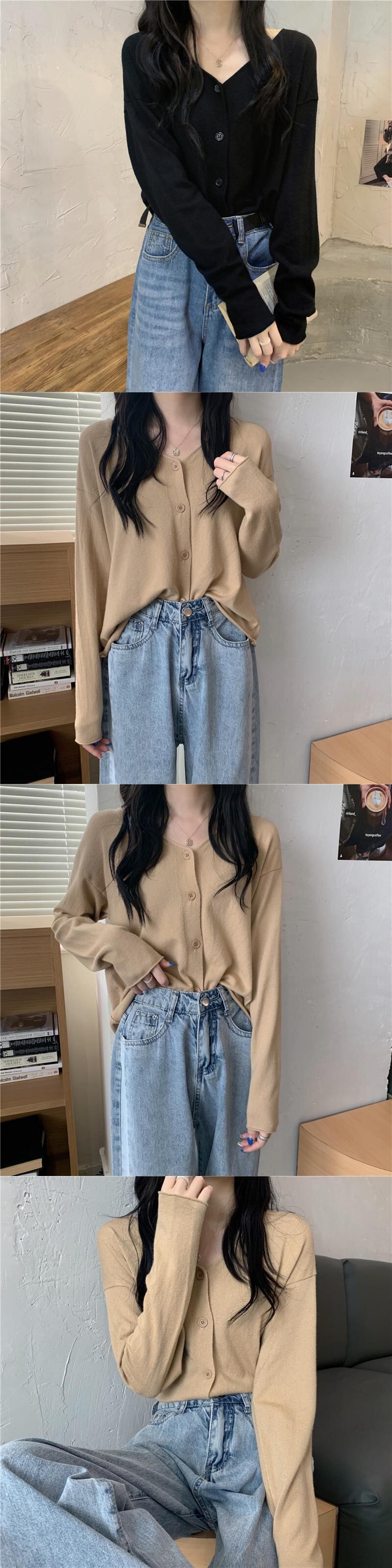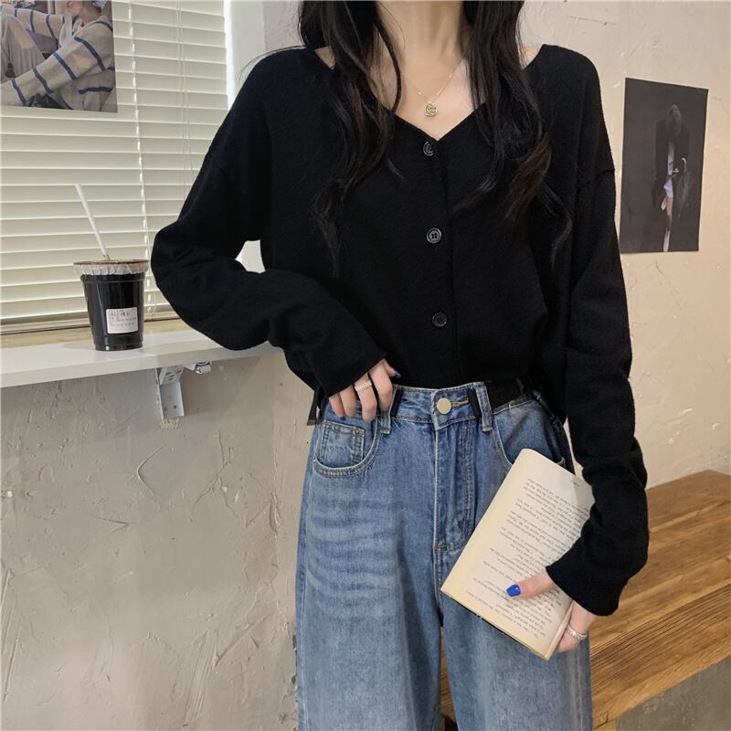 Vネックブラックニットカーディガン薄手セーター Tシャツショートトップス ロング 長袖 コーデ Marchs97472812570