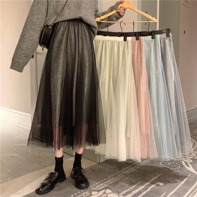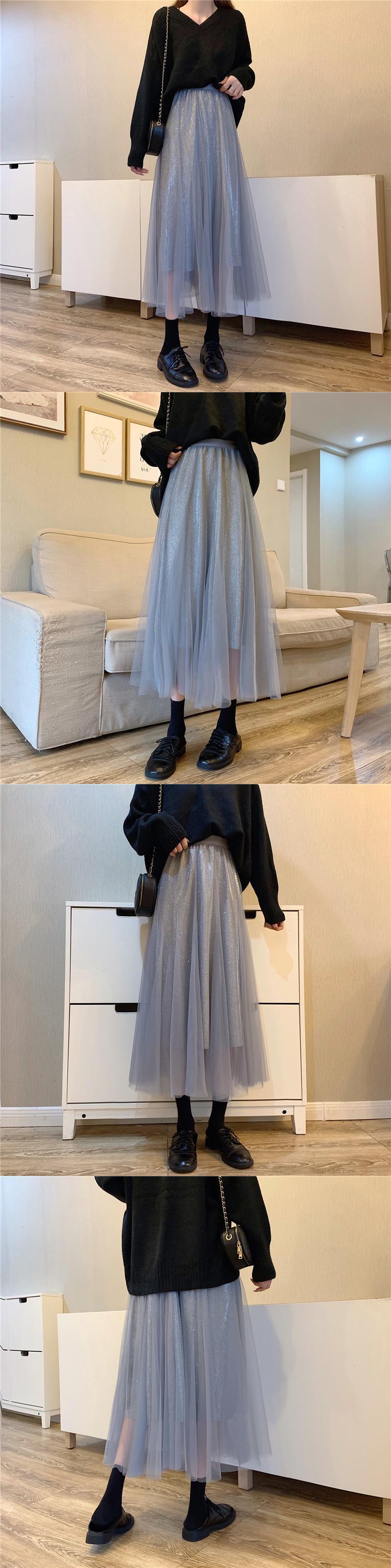 スカート メッシュスプリング秋物セーター ハイウェストウェストAラインプリーツ 春物 オータム ウエスト ミドル丈 コーデ Marchs55292872893