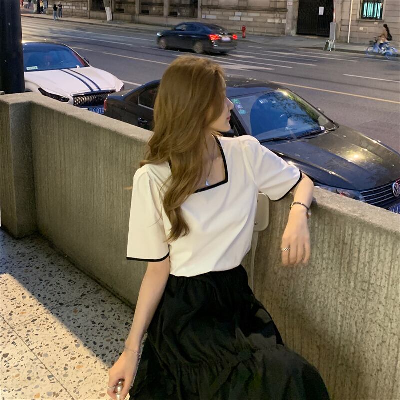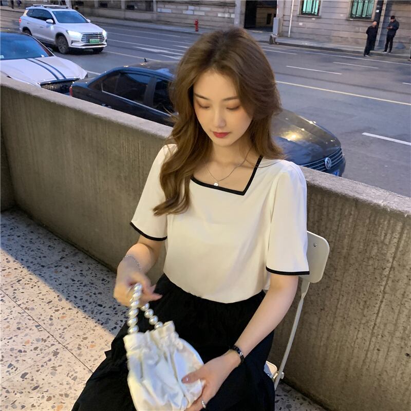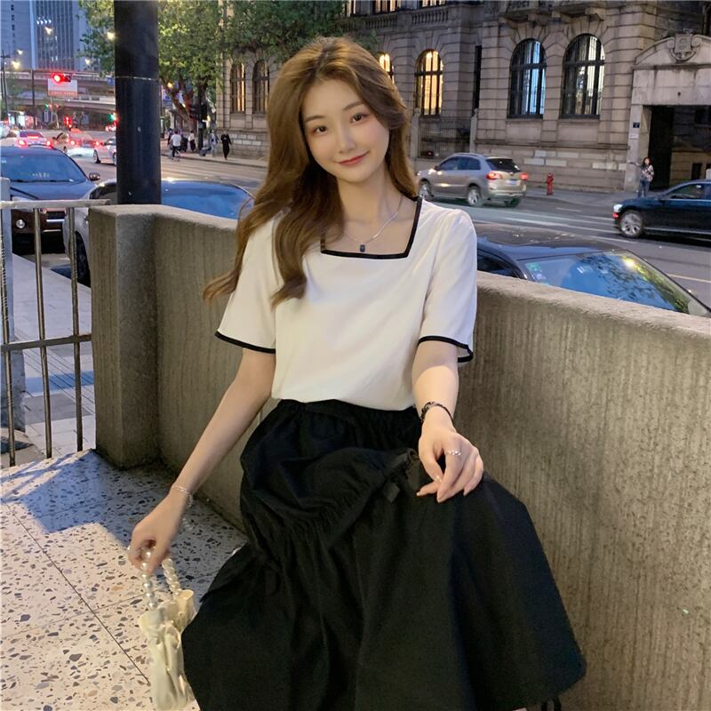 薄手ルーズホワイトTシャツ夏服トップス 夏物 スクウェア コーデ Marchs19403897903