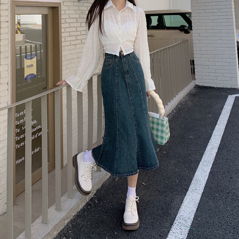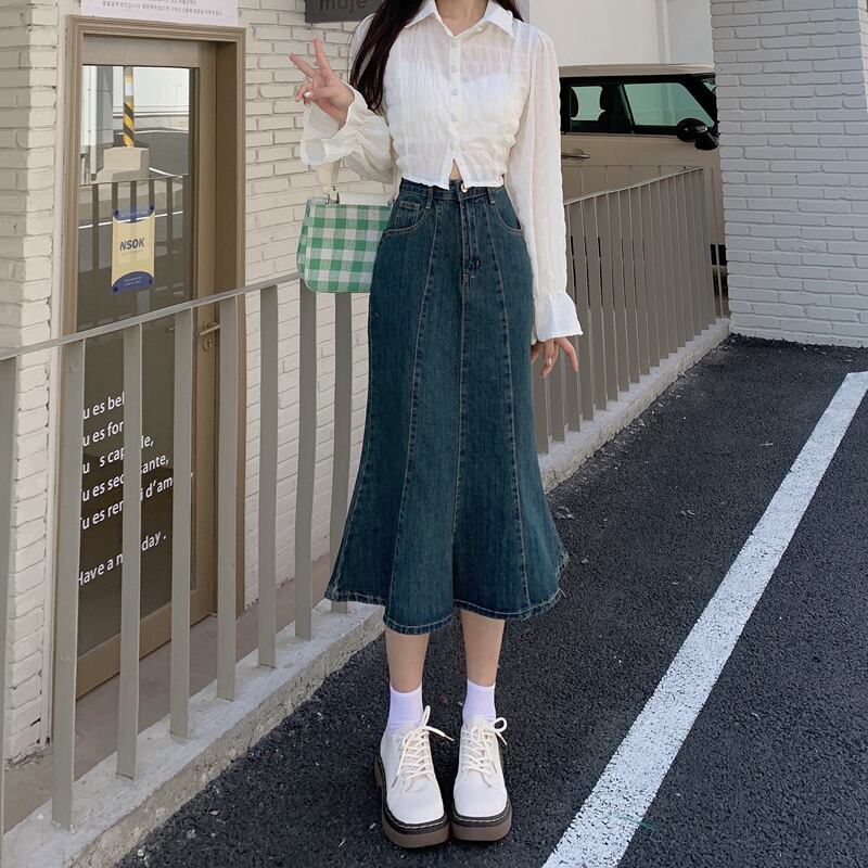 スカート スプリングブルーロングAラインスタンダードハイウェストウェストウィンター レトロ 春物 冬物 ウエスト ミドル丈 コーデ Marchs25226957437