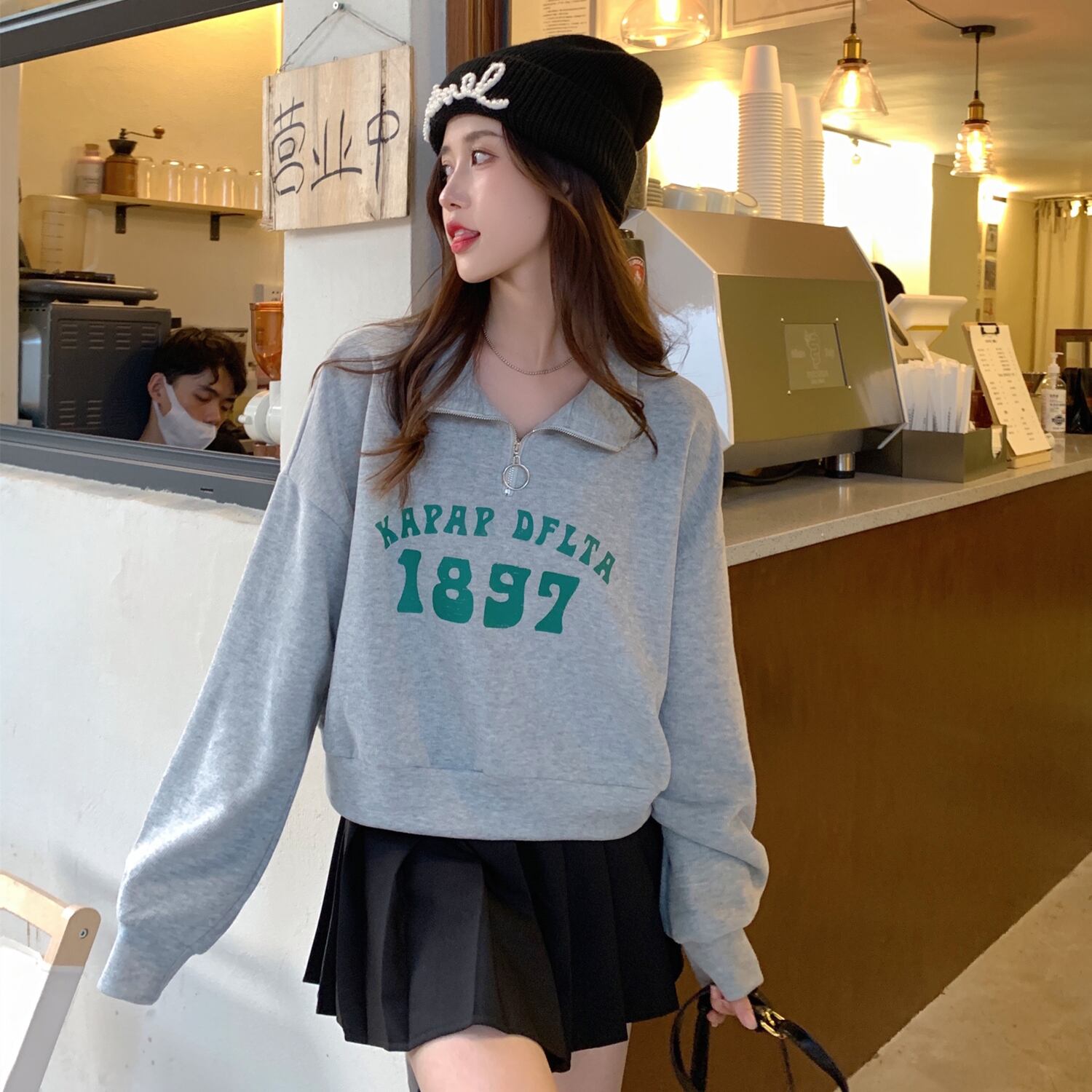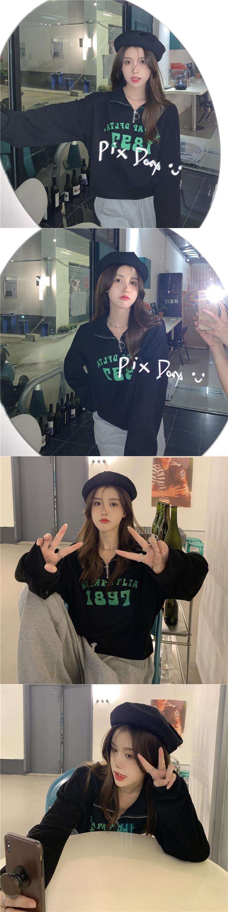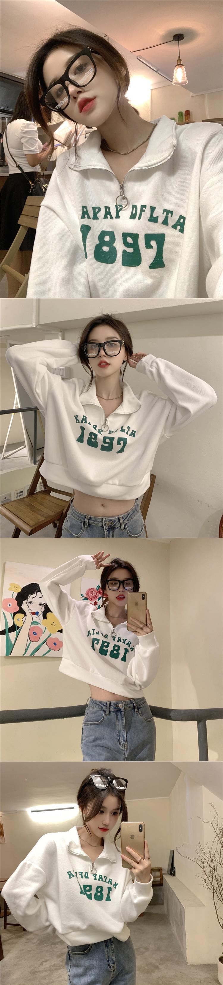 スタンダードカラーセーター スプリング秋物薄手NEWジッパーショートトップス レトロ 春物 オータム コーデ Marchs18722366121