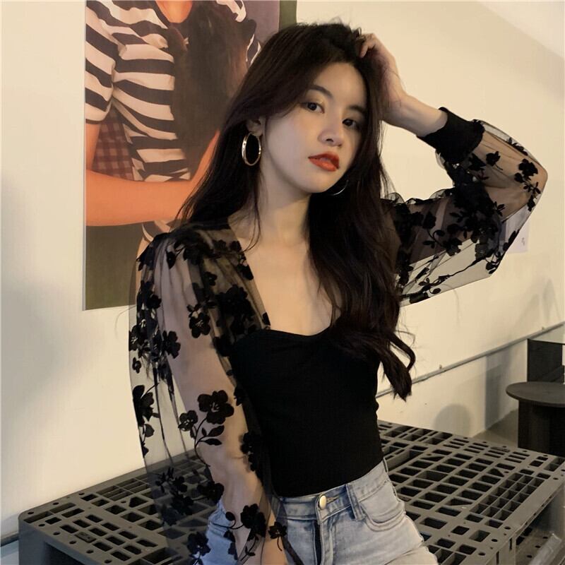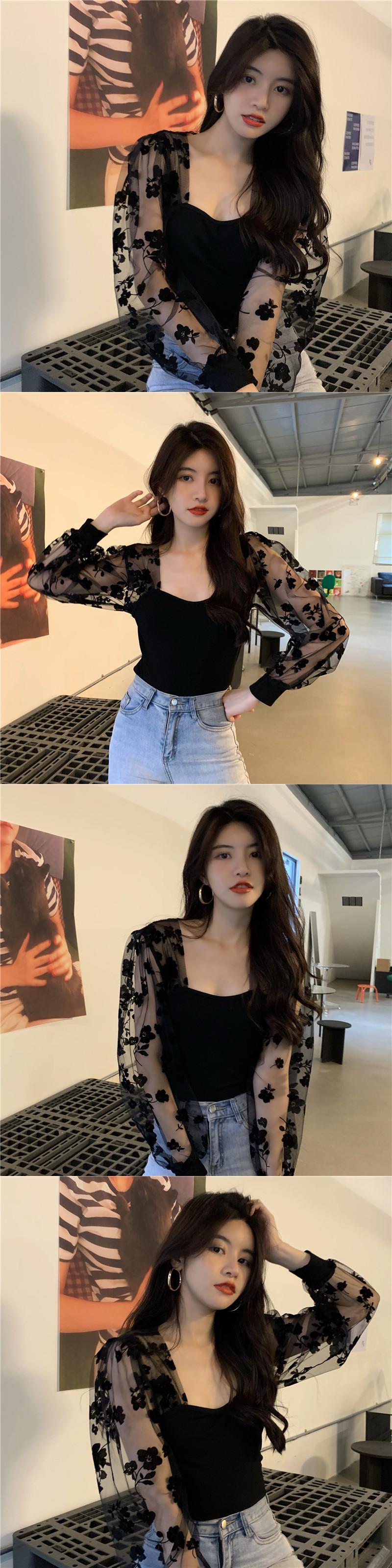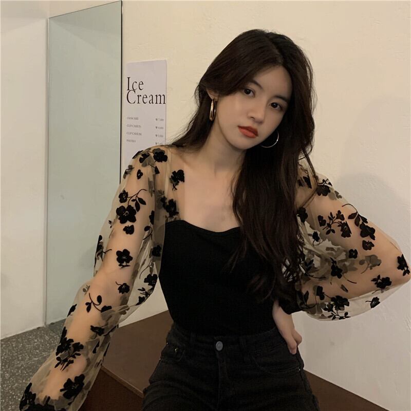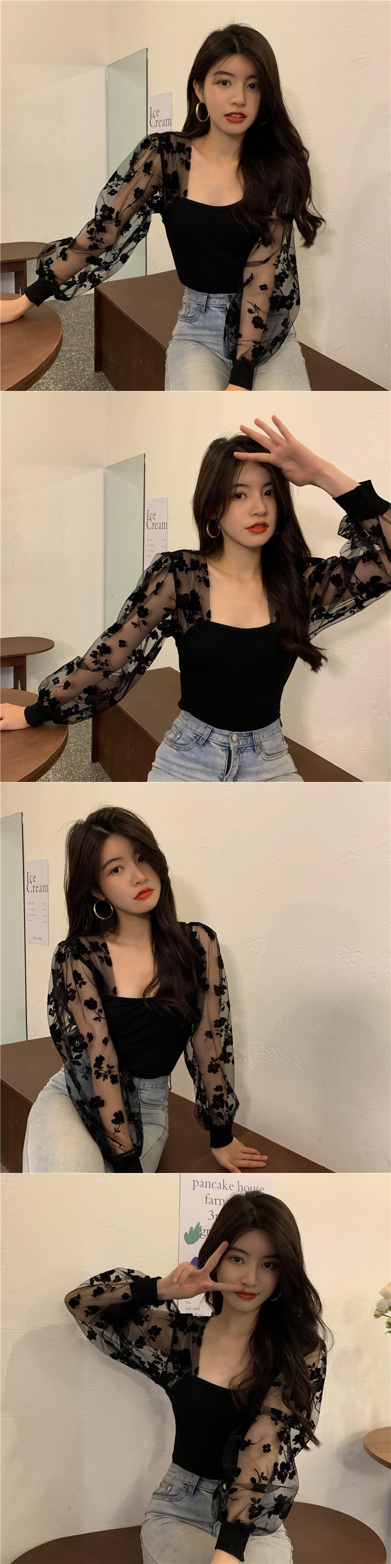 秋物シャツ 大人ガーリー スウィート キュート カジュアル オータム メッシュ スクウェア パフスリーブ コーデ Marchs3926271891