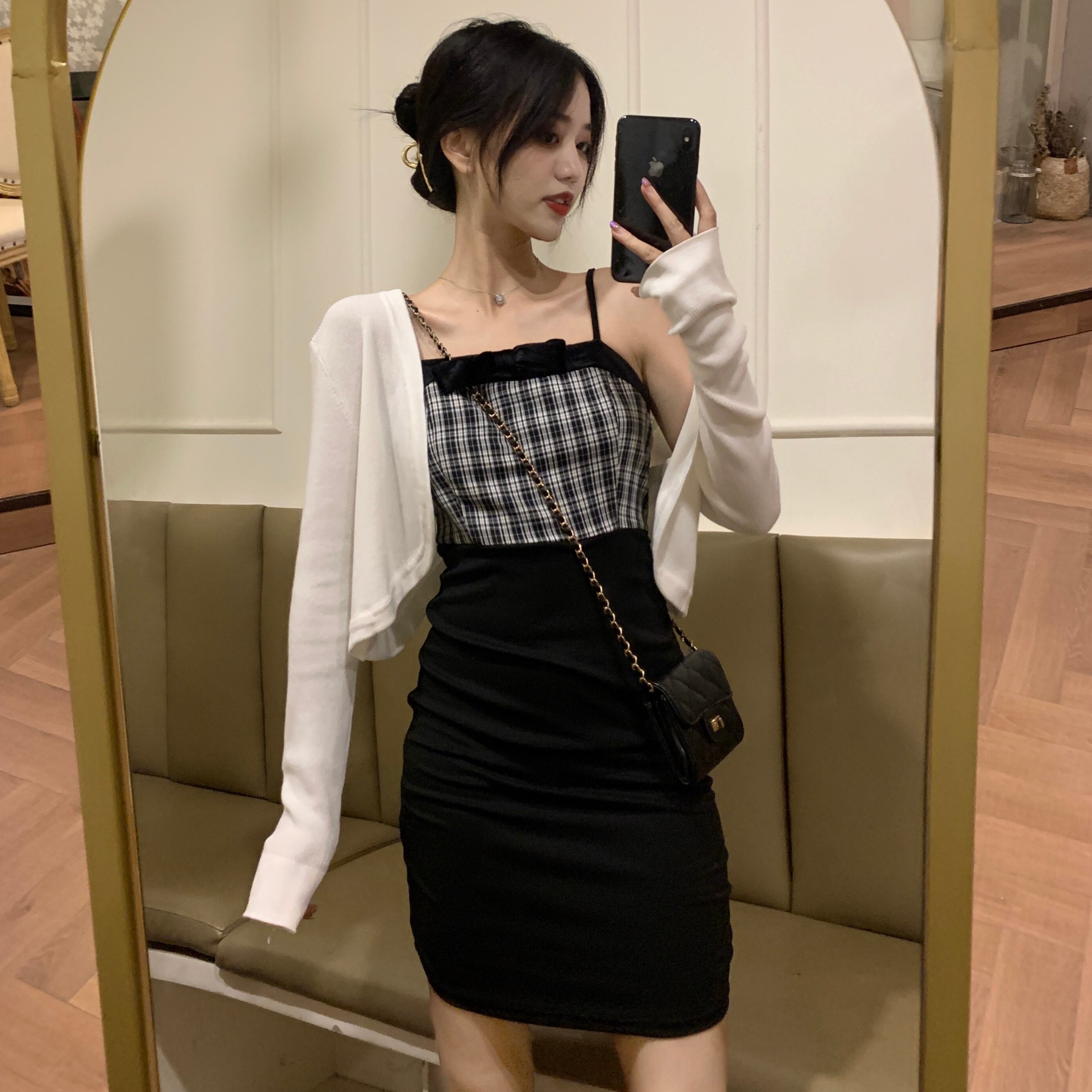 色:チェック柄ホルタースカート,チェック柄スカートプレミアムバージョン,ホワイトカーディガンプレミアムバージョン