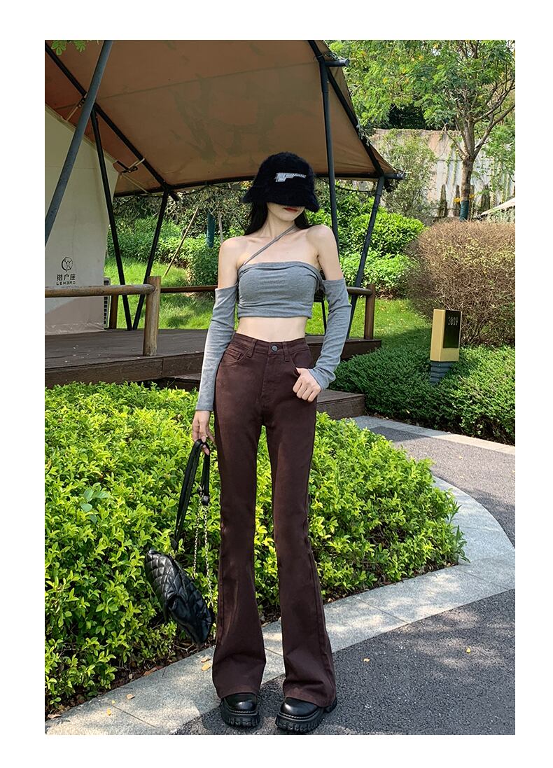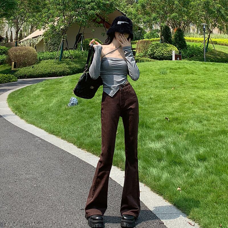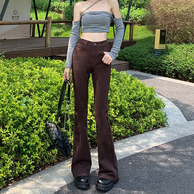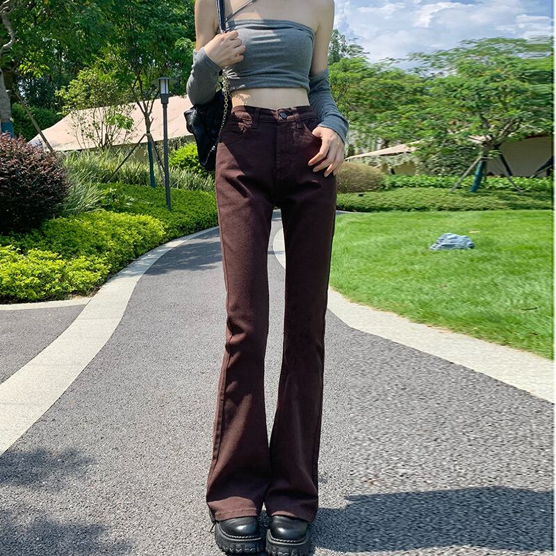 ブラウンジーンズ パンツ 夏服スタンダードハイウェスト薄手 レッド レトロ 夏物 ウエスト コーデ Marchs80458776837