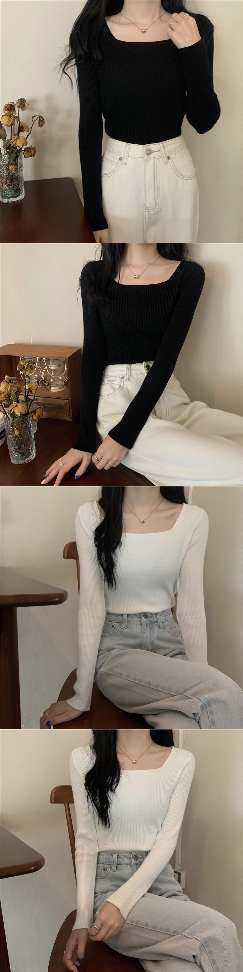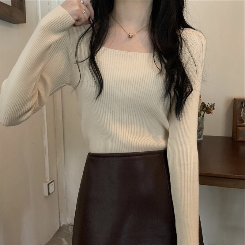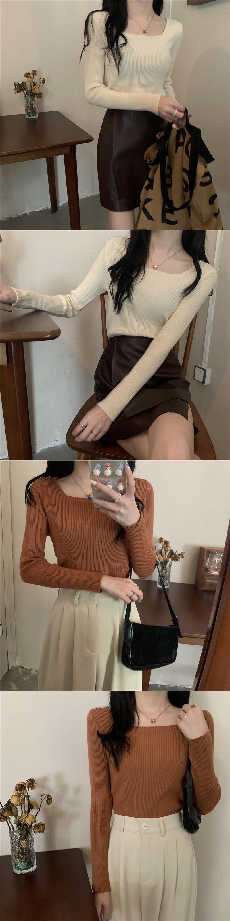 夏服カラーニットゆったりシャツ スリムトップス ロング 夏物 スクウェア 長袖 コーデ Marchs30377743116