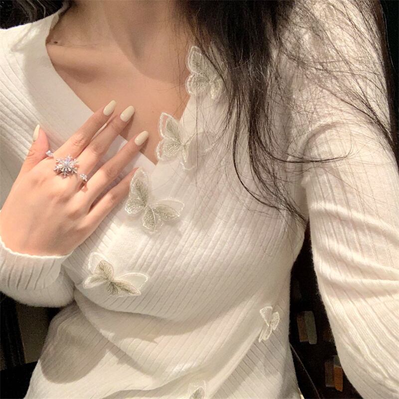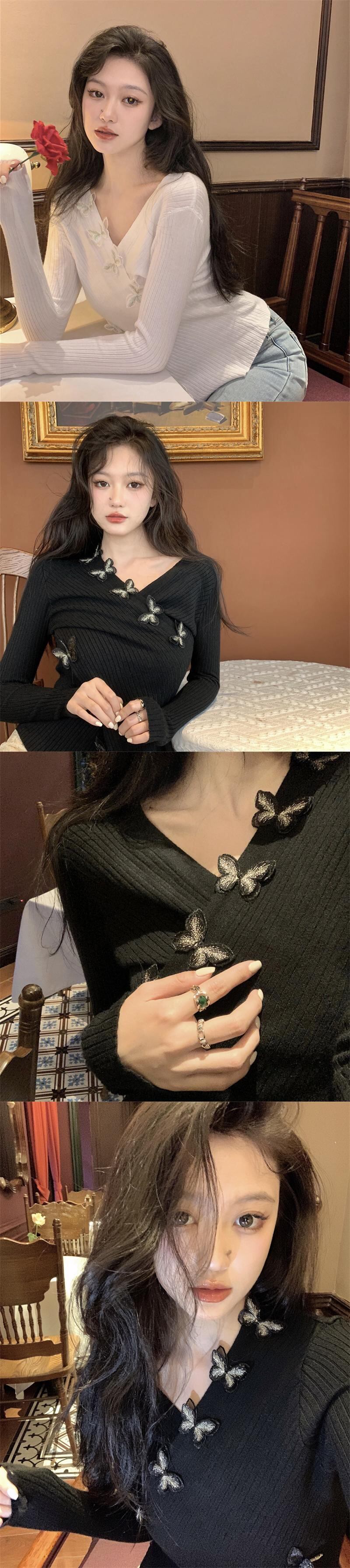 夏服スタイルショートVネックスリムトップス ニットセーター 薄手ゆったりシャツ レディース ロング 夏物 ピュア 長袖 コーデ Marchs48762730466